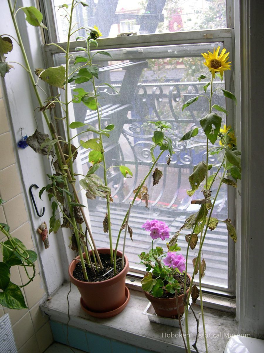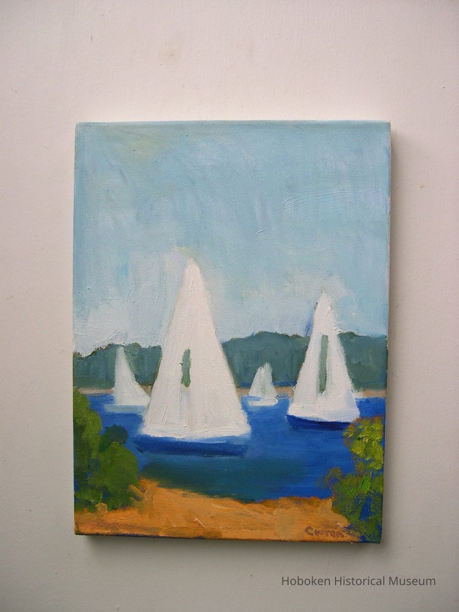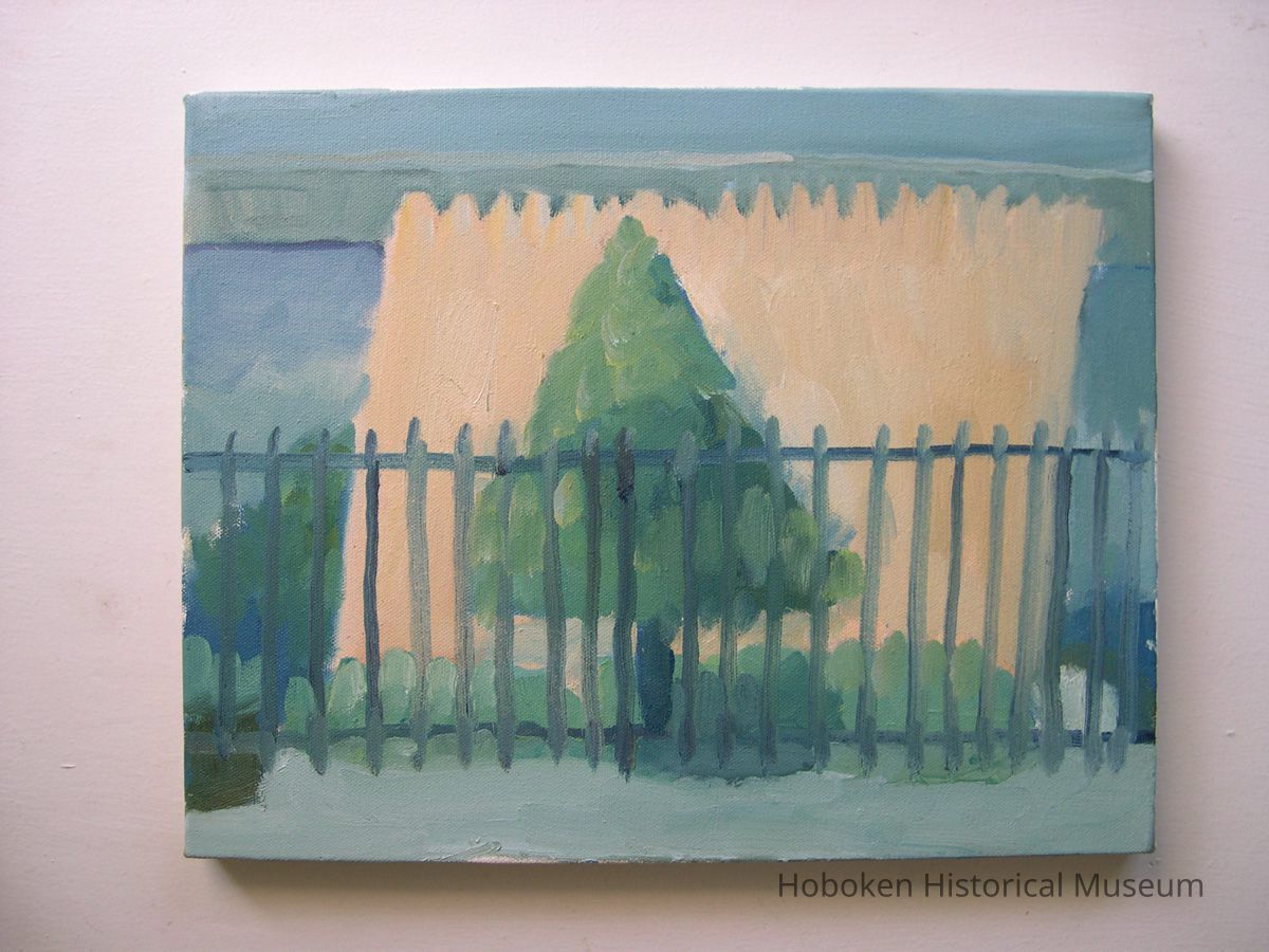 Notes: Notes written by Curran and sent to Museum collections along with the digital image files: Well it begins taking in my plants from the outside ledge. Hurricane Sunflowers is the photo 070, 071, also On that Monday afternoon, October 29, I took in my AC, soon after that I heard a snap outside and I looked out the window and the tree had falled right in the middle of the block. On First St. between Bloomfield and Garden. I think it was one of the first to fall, 051, 056 for city workers were soon there to take care of it. 092,093 is of the clean up after wards. Also on Nov1st, I went out to city hall and painted the Flag Still Standing 202 that is on top of old bank now Walgreens. I felt so guilty painting when all others were helping in the community.Friends of the museums told me to keep painting, you are doing service. I have two more images to send thanks Bill ---- August 22 For me the storm started on Monday Night Oct 29th. Seascape#169 I was painting on an oil painting and i just completed a part of water in a seascape, it was 915pm and i stood back and said i like that... all of a sudden the lights went out. I have a habit of ruining something after i like what i just did. So in a way it was a blessing that i could not touch it. so i lay down my paint brushes and what followed was one week of night living by candle light. The Storm reminded me of a blizzard except there was no snow, just black at night. It was very interesting thought to see folks walking down the street from my apt windows and casting these circular white shapes on the sidewalk from their flashlights as they strolled the evening in darkness. Also one night when i came home from St Peter and Paul's Church which i think never lost power , i stood on my front steps before retiring and i saw the stars on the corner of Bloomfield Street and First like i have never before. The sky was so dark blue and millions it seemed of stars were above my head. That was breathtaking. One week after Sandy, we had a Nor'easter, Tree,#185 oil on canvas, was done while nor'easter was belting snow and ice. I regret not shooting more photos, especially of City hall, with the Armed forces there. It was like MASH but just more intense. Rebuilding Hoboken#247, oil on canvas was painted on Garden street in the Spring. Folks were starting to repair what had been damaged from Sandy. Just as i started working on this painting the workmen too the wood leaning against the building away. note: the flag painting sent prior is oil on canvas board, all works are in my collection. ==== ==== Original or Copy: Digital copy Status: OK Status By: dw Status Date: 2014-09-26