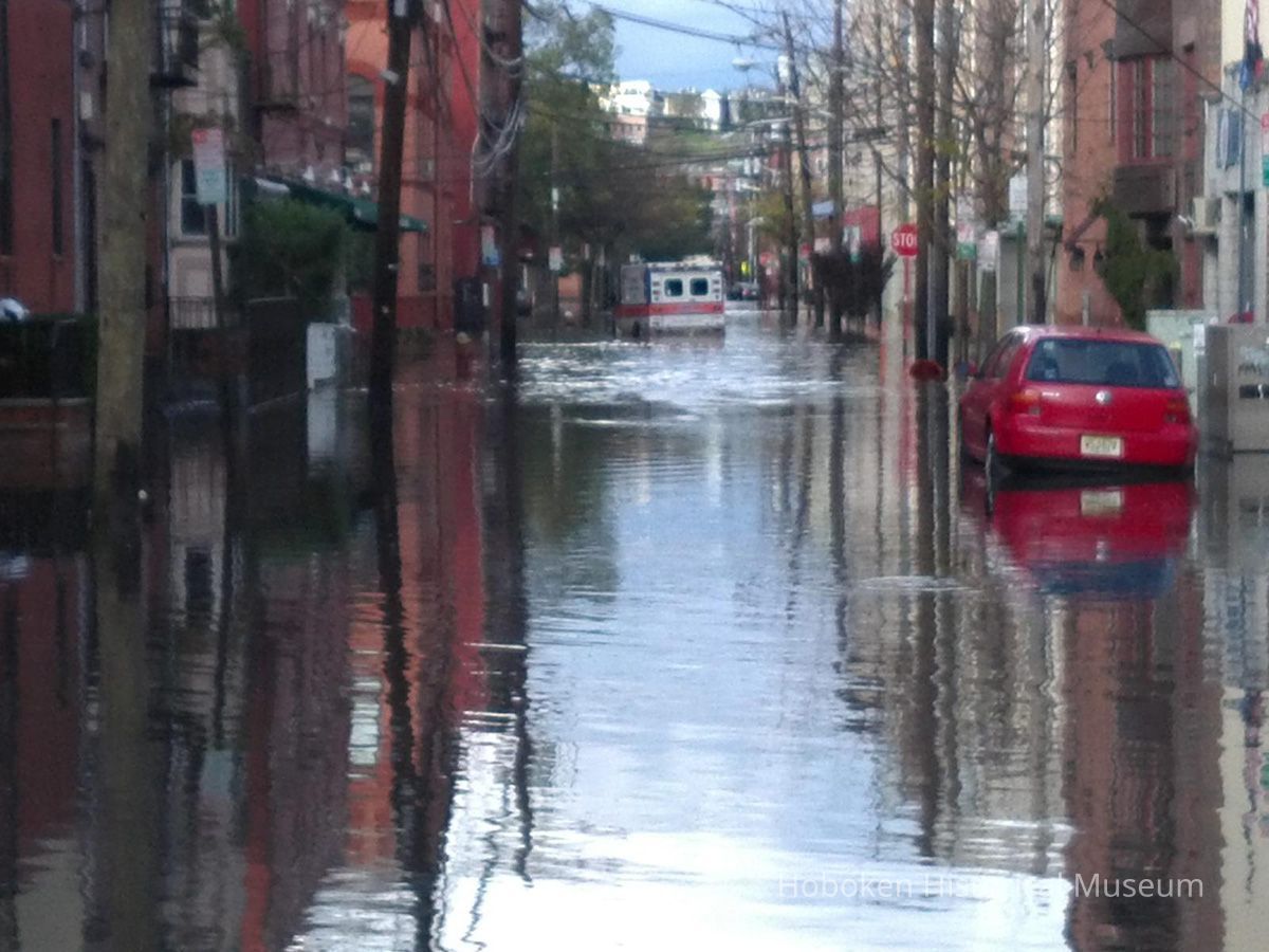 Photos were displayed for visitors on interactive media screens at Hoboken Historical Museum for the duration the exhibition: Hoboken: One Year After Sandy, Lessons Learned about Preparedness, Resiliency, and Community. On view: October 29, 2013 - July 6, 2014.