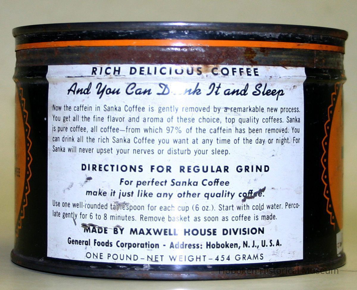 Can: Sanka Coffee, 1 lb., Maxwell House Div., General Foods, Hoboken, n.d., ca. 1950.