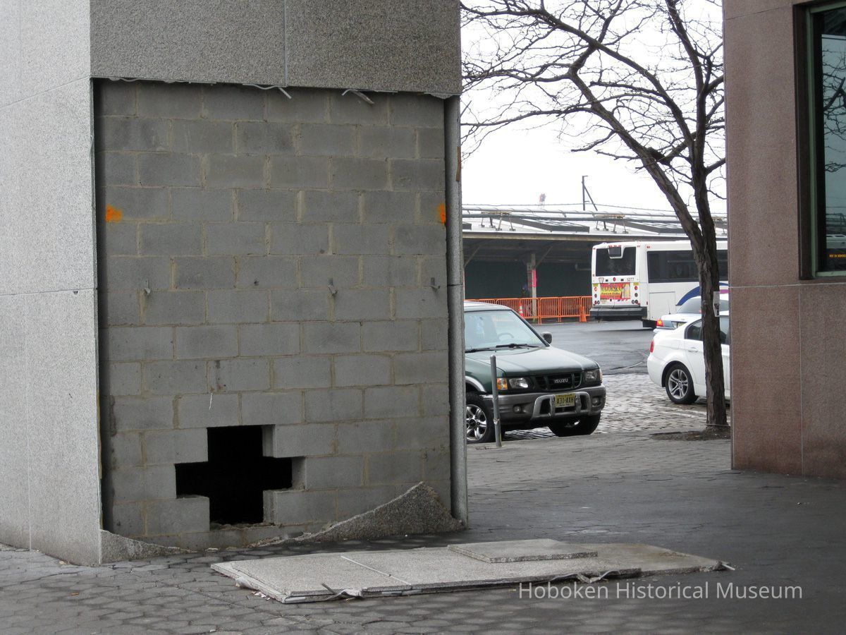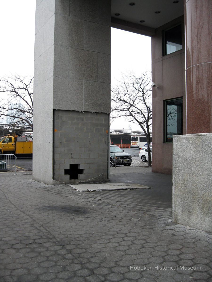 --damage to column on southeast corner of Baker Building, Hudson Place