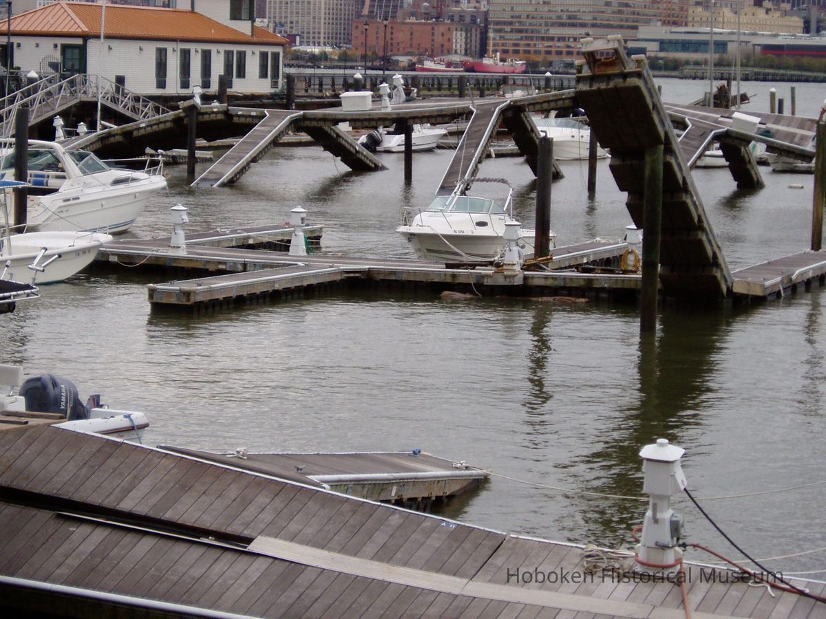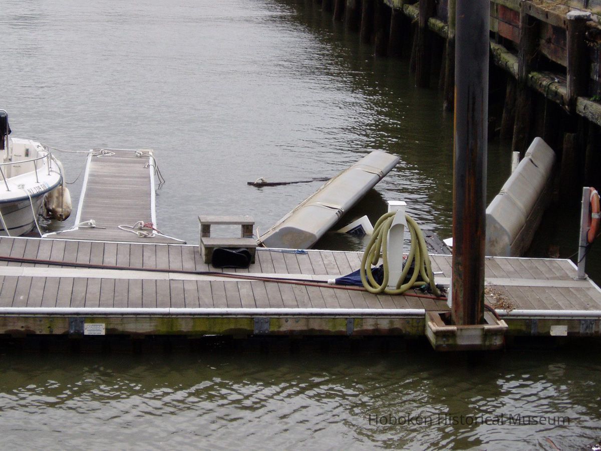 Color photos, 9, of damage from Hurricane Sandy to Hoboken Marina, Nov. 2, 2012.