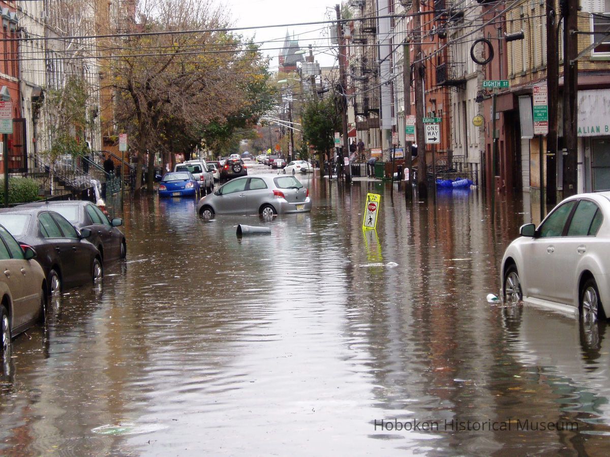 Color photos, 7, of flooding from Hurricane Sandy at Willow Ave. & 8th St., Hoboken, [probably Oct. 30, 2012].