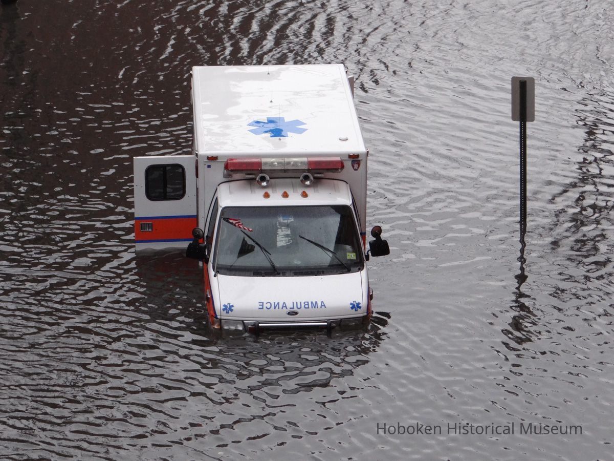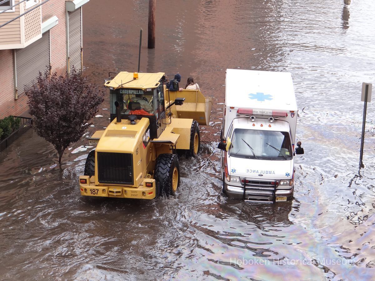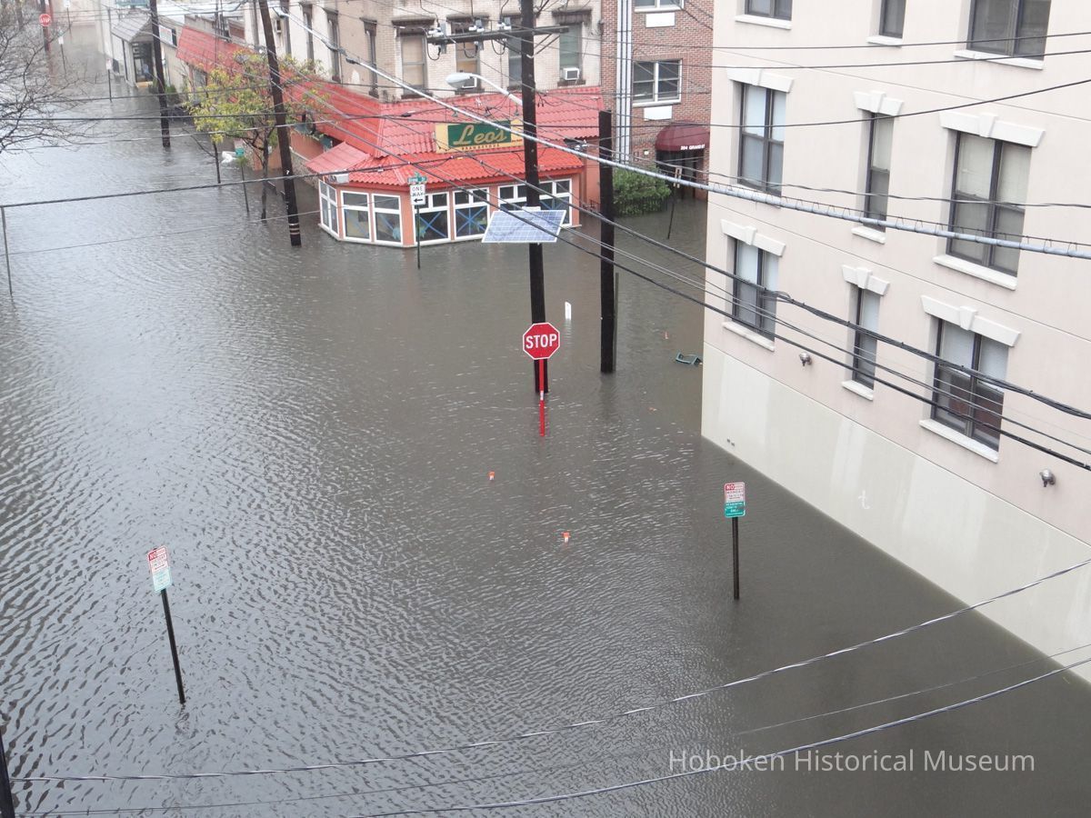 Color photos, eleven, of flooding on Second Street from Grand to Clinton Streets, Hoboken, October 30, 2012, taken by McKevin Shaughnessy.