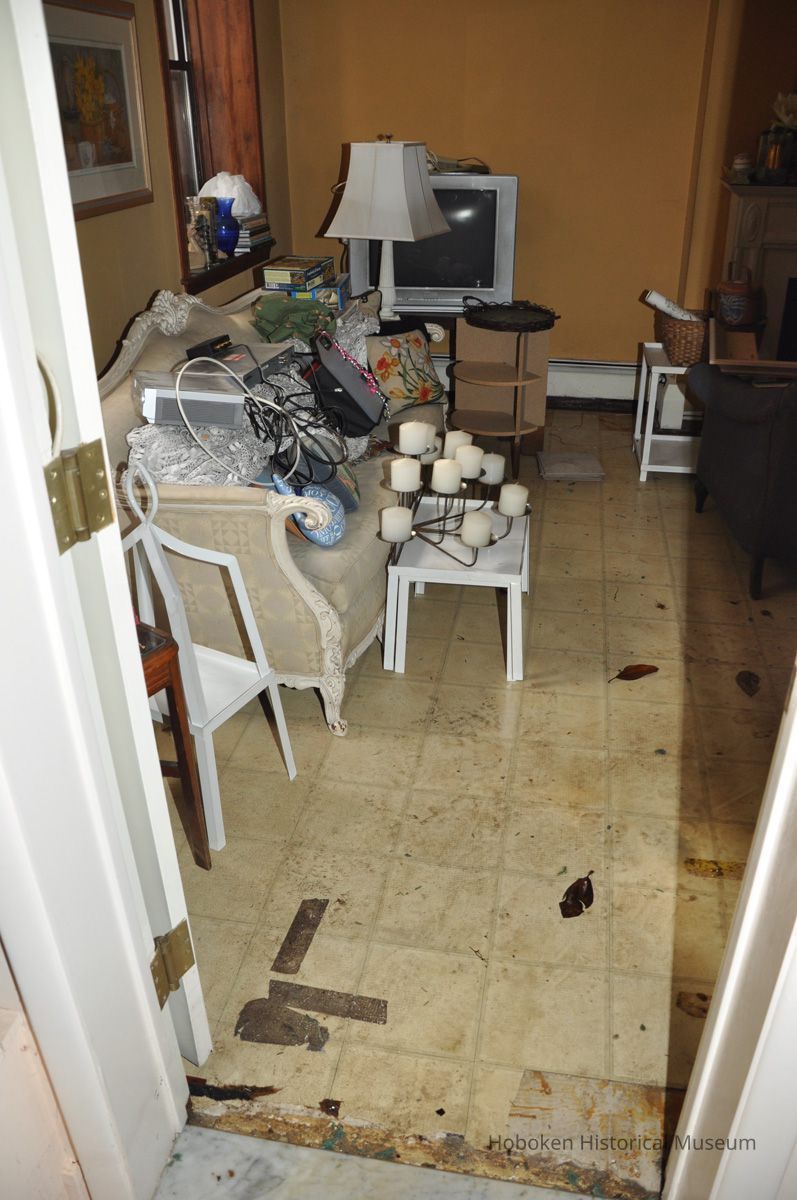 Color photographs, thirty-three, of documentation of water damage to a garden apartment from Hurricane Sandy, Hoboken, ca. October 31-Nov. 1, 2012.