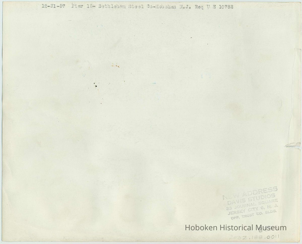 B+W photo of the reconstruction and extension of Pier 15 at the Bethlehem Steel Shipyard, Hoboken Division, Dec. 31, 1957.