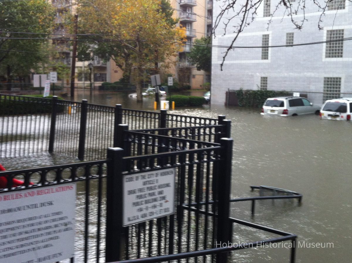 Color photographs, ten, of Hurricane Sandy and damage to Hoboken Housing Authority property, Hoboken, October 29-30, 2012.