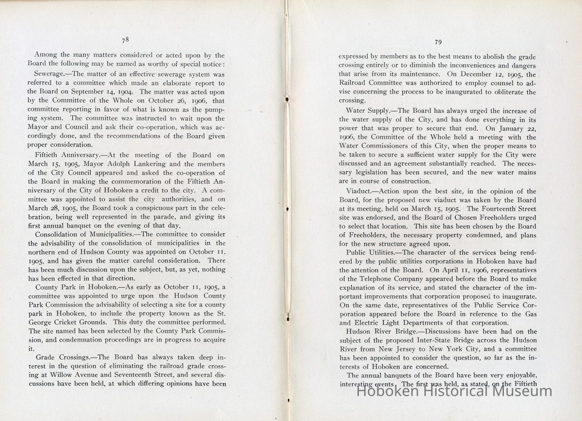 History of Hoboken. 1907. Issued by the Hoboken Board of Trade.