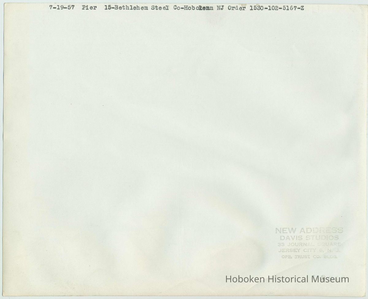 B+W photo of the reconstruction and extension of Pier 15 at the Bethlehem Steel Shipyard, Hoboken Division, July 19,1957.