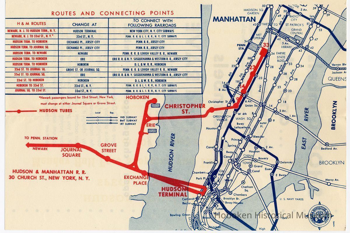 Map: Hudson & Manhattan R.R., Routes & Connecting Points. N.d., ca. 1955-1956.