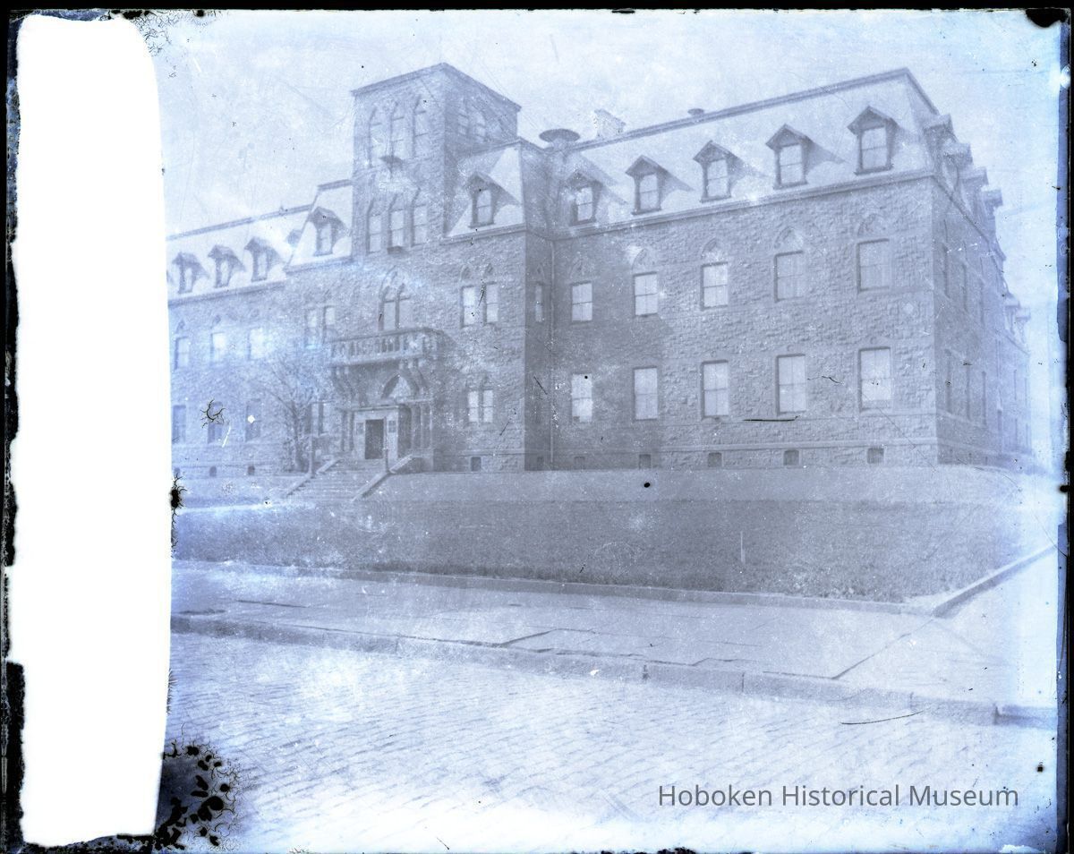 B+W photo negative of Stevens Institute of Technology Main Building, 5th St. between River & Hudson Sts., Hoboken, n.d., ca. 1880-1890.