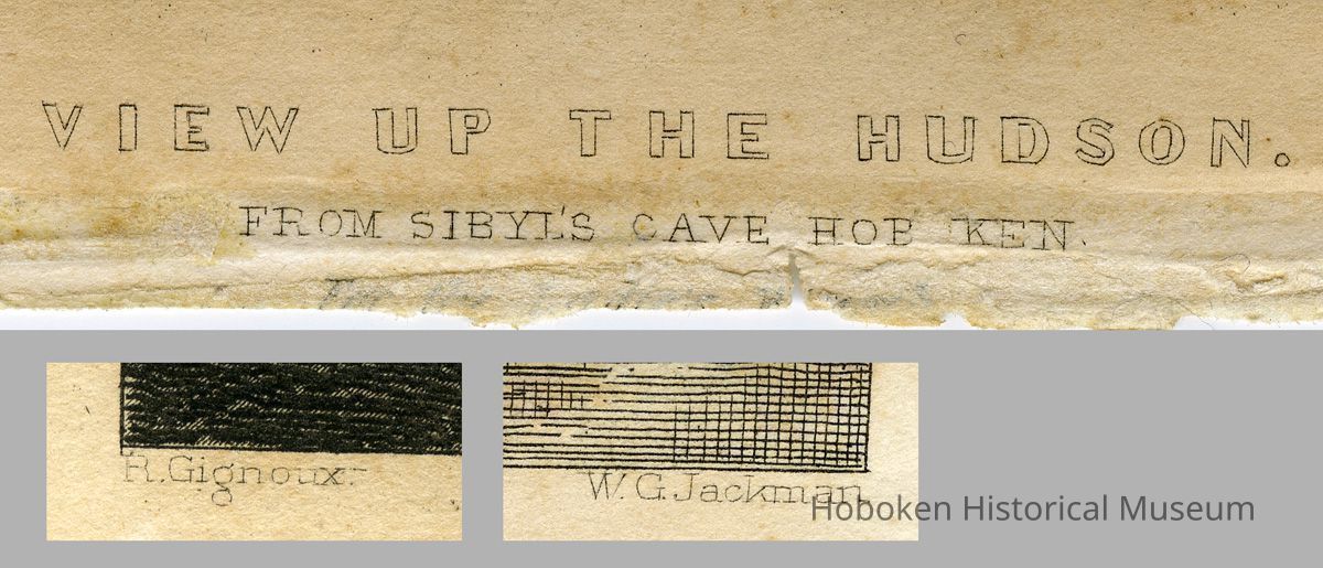 Print, hand-colored: "View up the Hudson From Sybil's Cave Hoboken" Artist: R. Gignoux. Engraver: W.G. Jackman. N.d., ca. 1842-1847.
