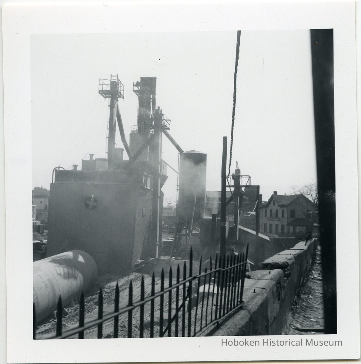 B+W photos, 16, of Instant-Crete concrete mixing plant at Jersey City-Hoboken border, near Paterson St., Hoboken, Jersey City, 1975
