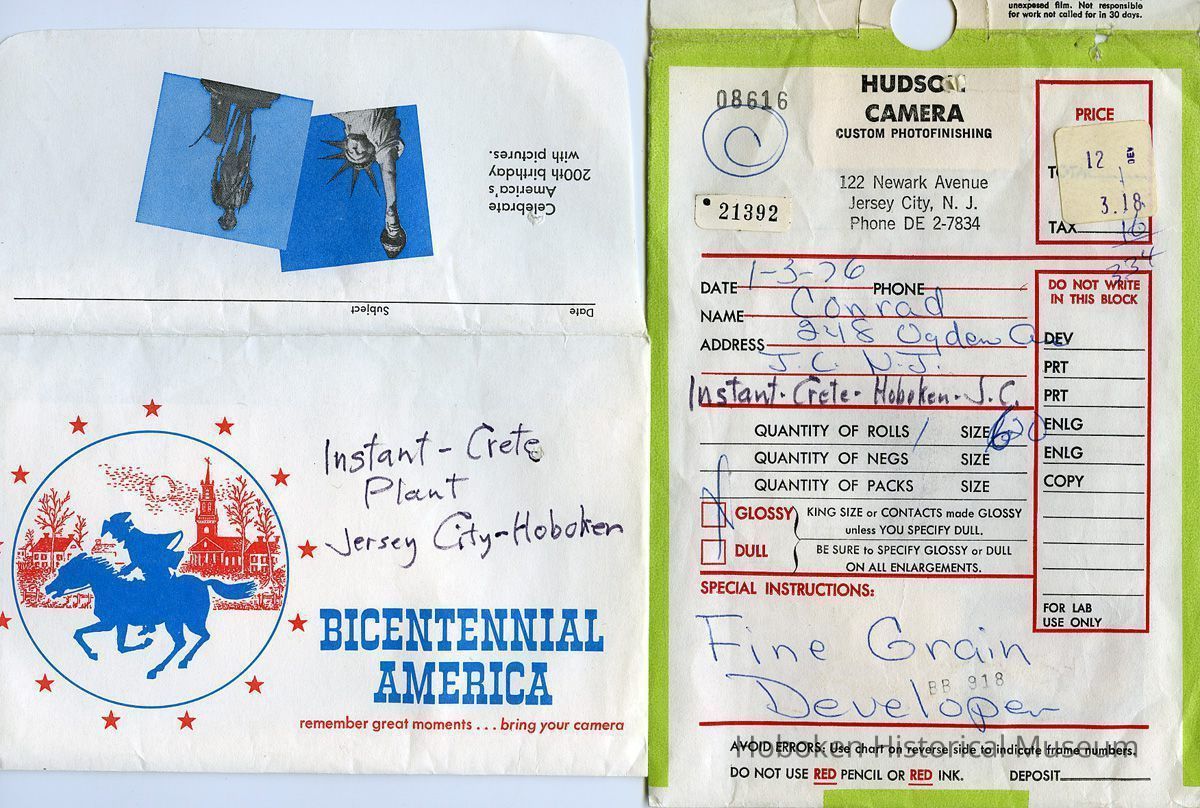 Black-and-white photographs, sixteen, of Instant-Crete concrete mixing plant at Jersey City-Hoboken border, near Paterson Street, Hoboken, Jersey City, 1975.