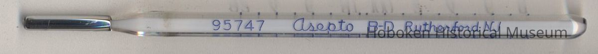 Oral thermometer in black plastic advertising case, Willow Pharmacy, 900 Willow Ave., Hoboken.