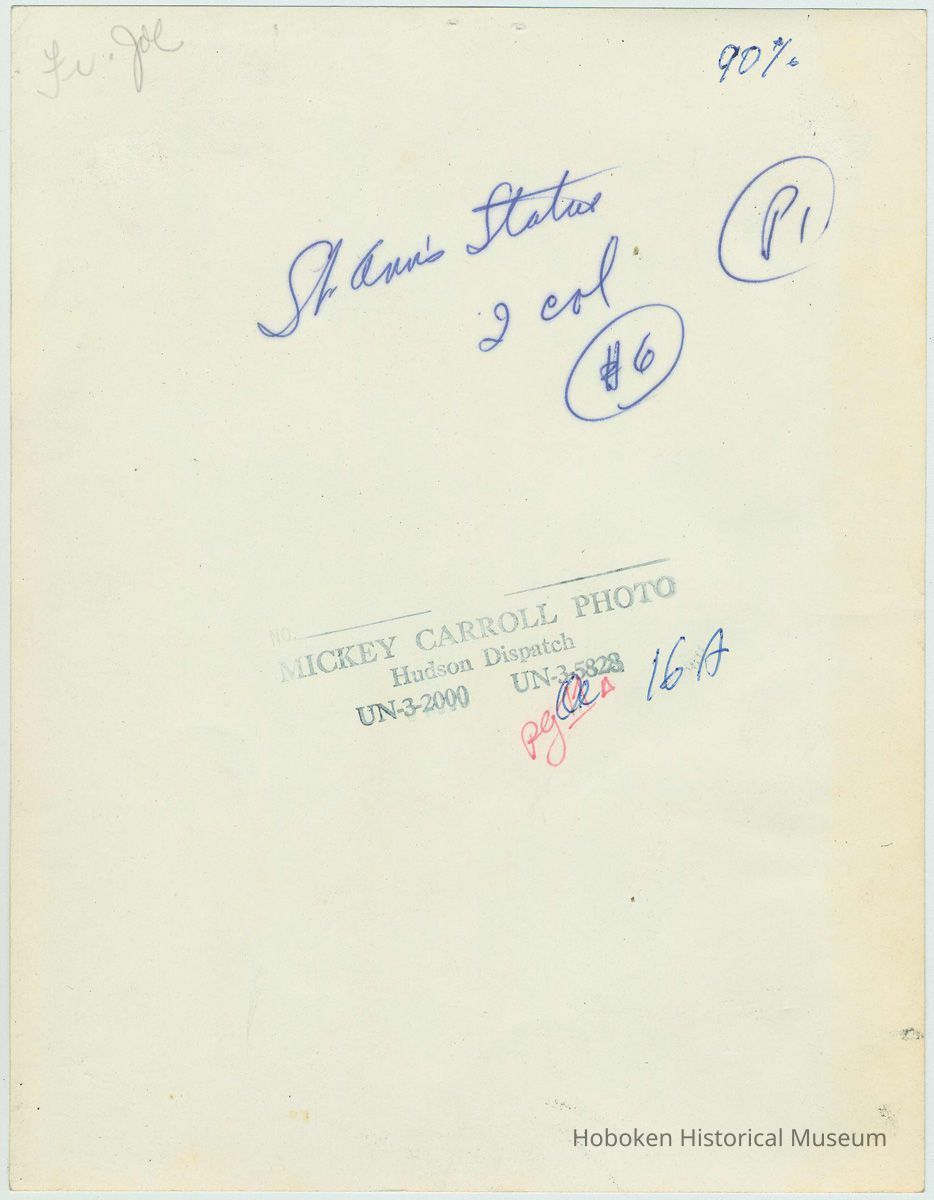 B+W photo of procession with Madonna being carried on 7th St. next to St. Ann's Church, Hoboken, no date.