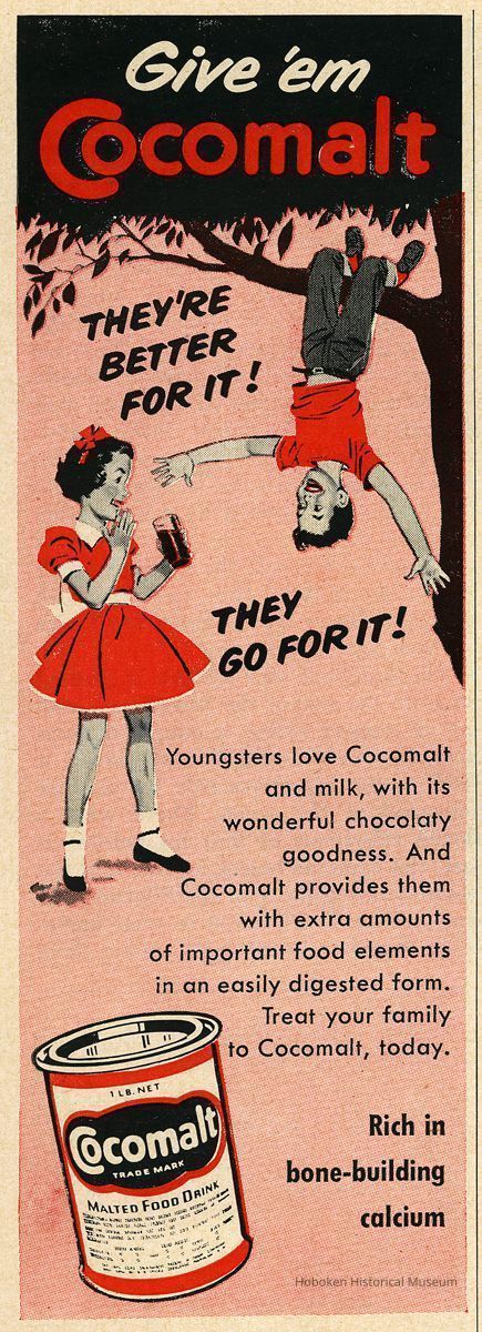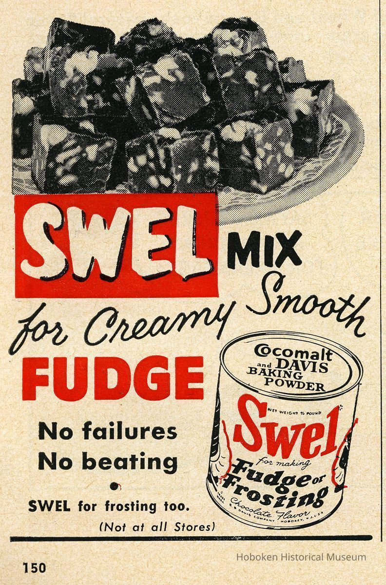 Davis is not stated in the copy, but their name and Hoboken can be seen in the very fine printed detail on the depicted cans for Cocomalt and Swel.