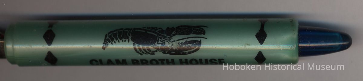 Can opener punch from Clam Broth House, 34 Newark St., Hoboken, no date, ca. 1972-1985. Metal and plastic, 6" long.
