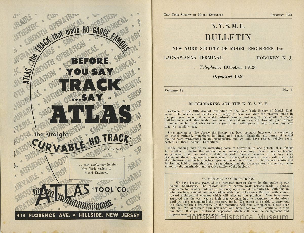 Bulletin: 24th Annual Exhibition. N.Y. Society of Model Engineers, Inc., Lackawanna Terminal, Hoboken, N.J. Vol. 17, No. 1, Feb. 1954.