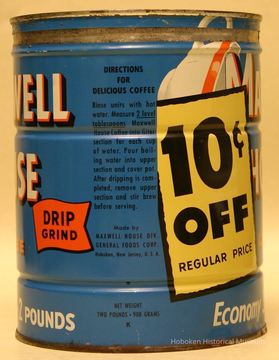 Can: Maxwell House Coffee, Two Pounds Economy Size, Drip Grind, Hoboken, no date, ca. 1945-1955.
