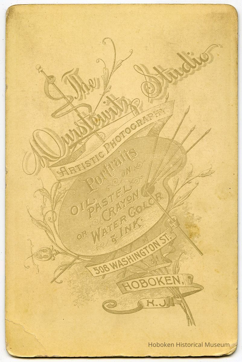 4-1/4" x 6-1/2" high beveled gilt edge mount. Photograph taken by Christian Durstewitz, 508 Washington St., Hoboken, N.J. (imprint on front lower edge and on back.)