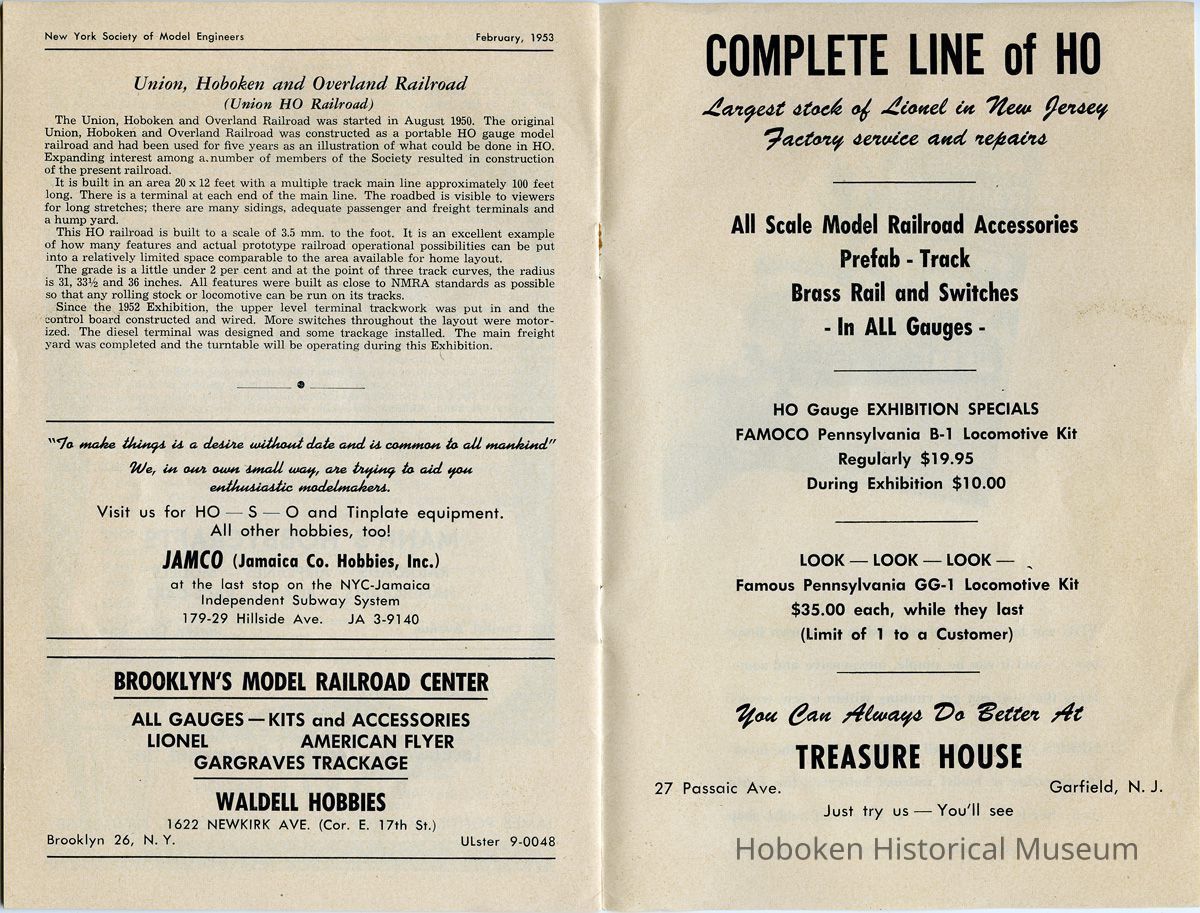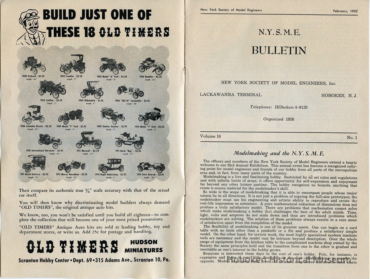 Bulletin: 23rd Annual Exhibition. N.Y. Society of Model Engineers, Inc., Lackawanna Terminal, Hoboken, N.J. Vol. 16, No. 1, Feb. 1953.