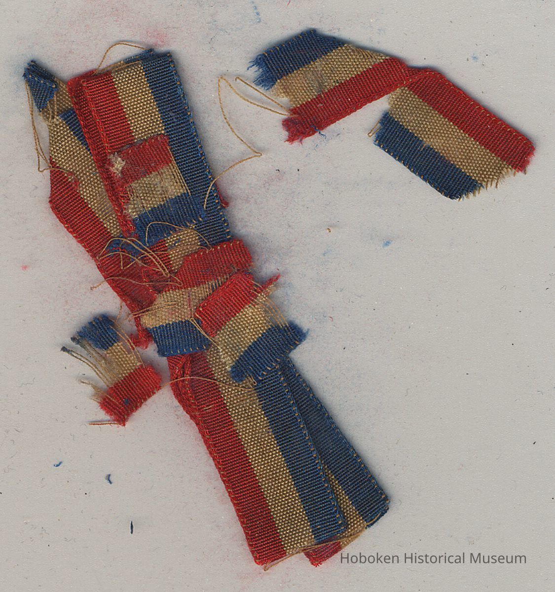 Original 1/2" wide patriotic ribbon bow is rotted and only remnants are present.