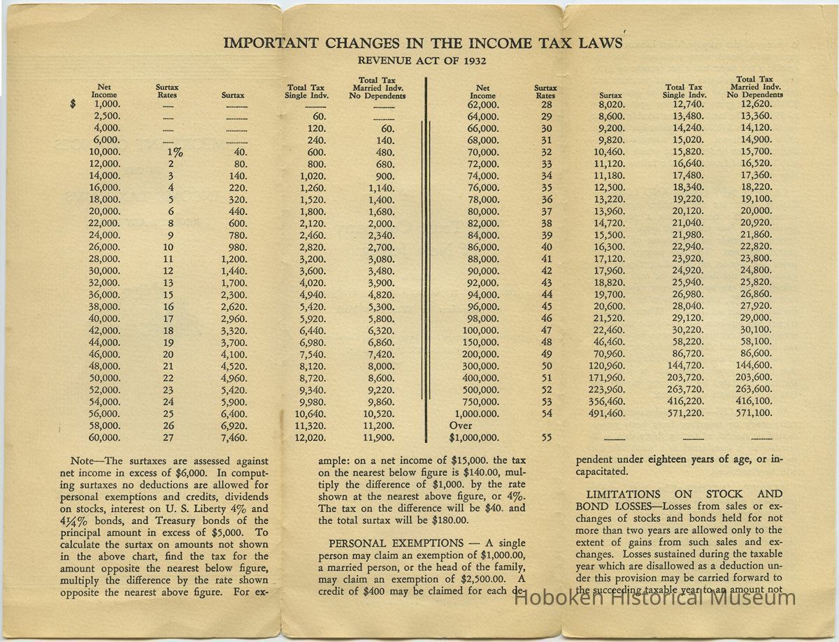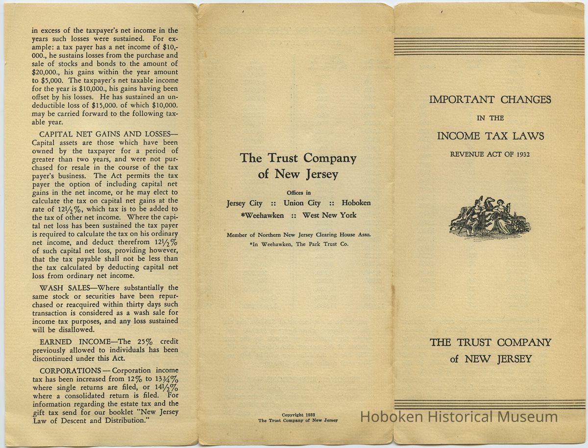 Brochure: Important Changes in the Income Tax Laws. Revenue Act of 1932. The Trust Company of New Jersey. 1933.