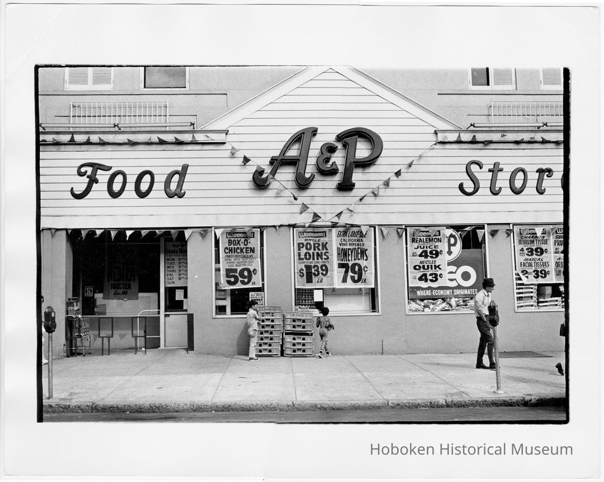 B+W photo of an A & P Food Store, street location unknown, Hoboken, N.J., no date (ca. 1968-1972).