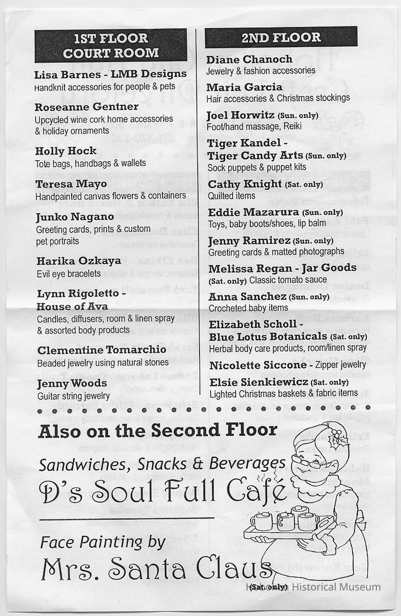 Hoboken City Hall Craft Fair Directory. Sat. & Sun., Dec. 7 & 8, (2013).