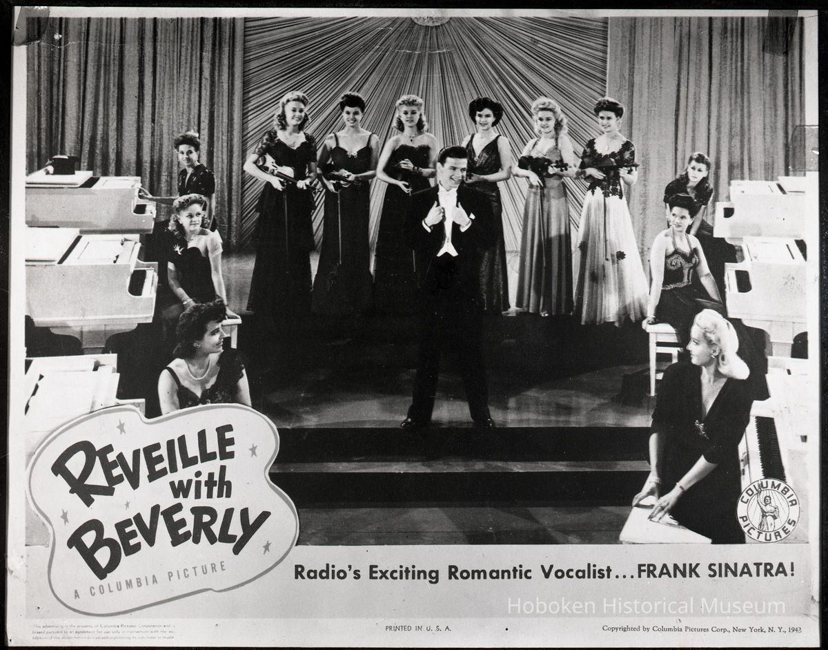 B+W photo negative: Reveille With Beverly lobby card, Frank Sinatra featured; Columbia Pictures, 1943.