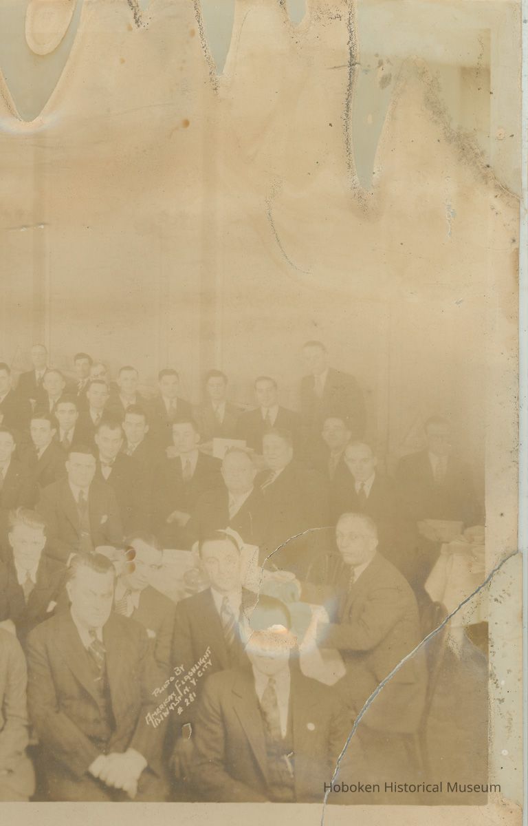 Per caption, Foltz was retiring from the Lackawanna Rail Road. The individuals are not identified, but it is likely that Nathan Marcus of Marcus Jewelers, Hoboken, is among the attendees.