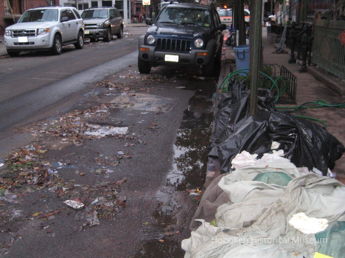 Color photographs, 12, of water and damage from aftermath of Hurricane Sandy, Hoboken, taken Thursday, Nov. 1, 2012, by Hank Forrest.