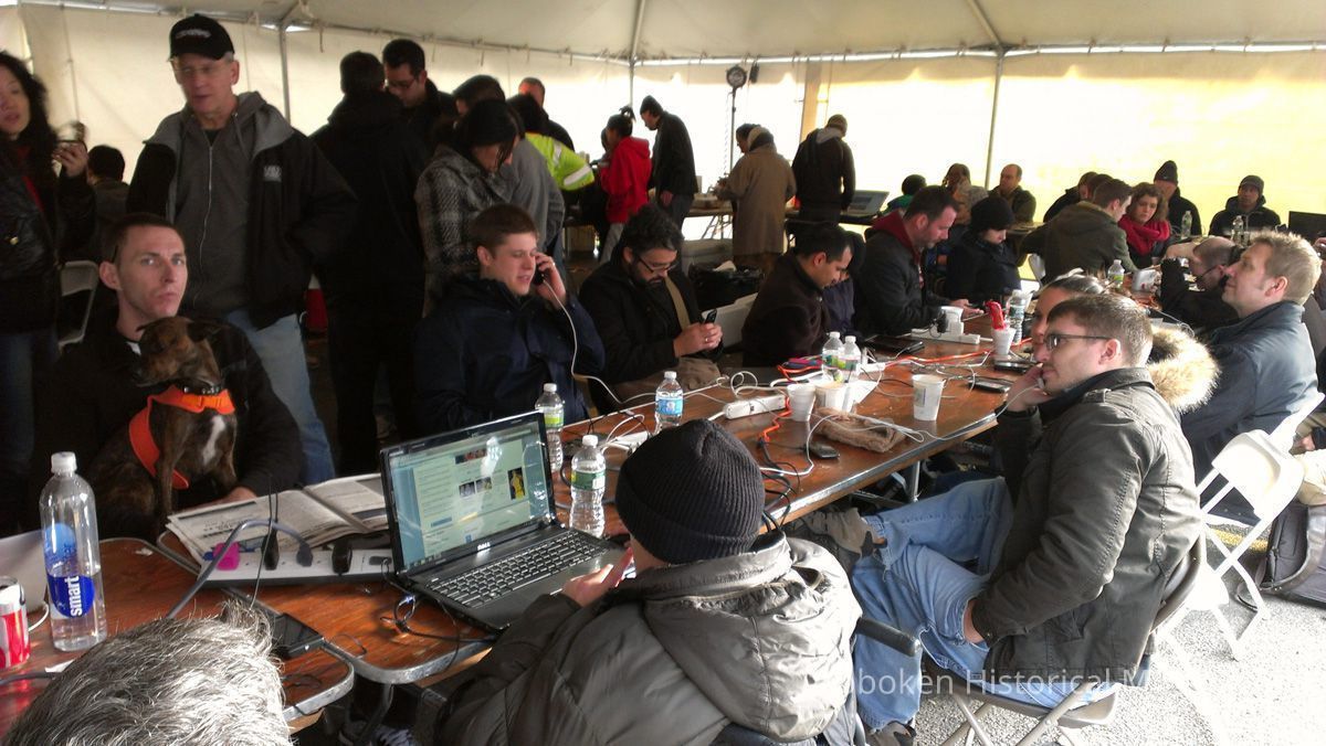 -- P.S.E. & G. tent interior in parking lot at Washington St. and Observer Highway