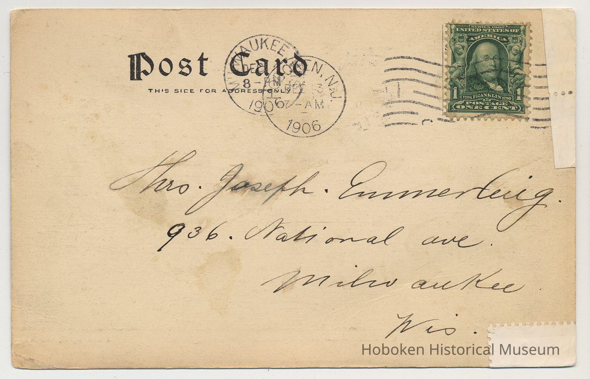 Postcard: 4152 Church Square Park, Hoboken, N.J. Published by C. Wolff. Postmarked Dec. 3, 1906.