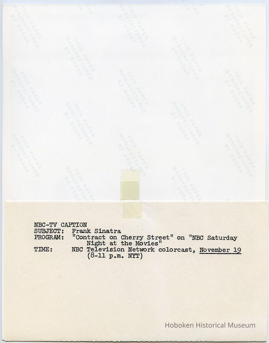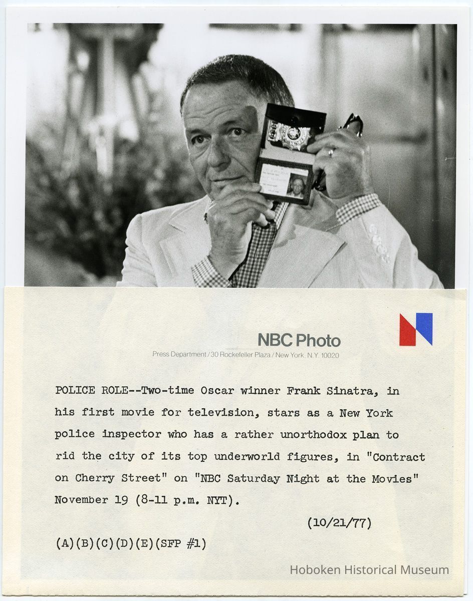 B+W photo of Frank Sinatra in 1st TV movie, "Contract on Cherry Street", 1977.