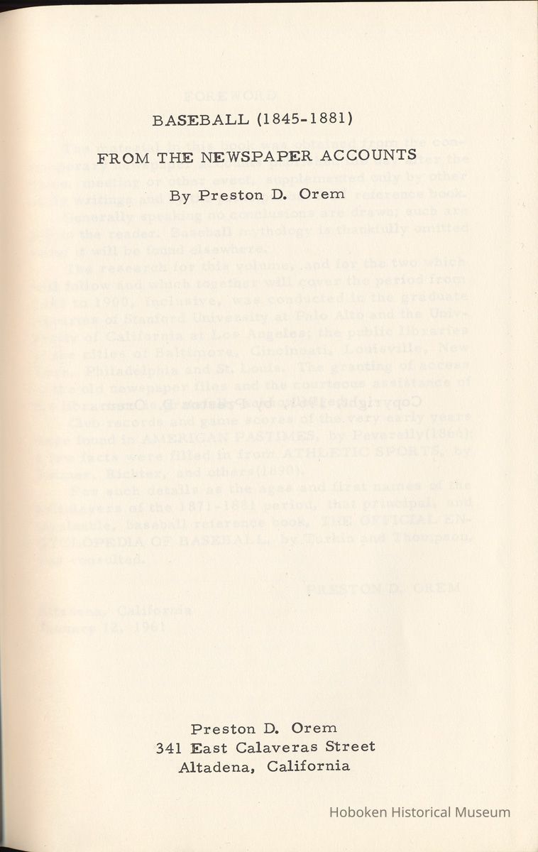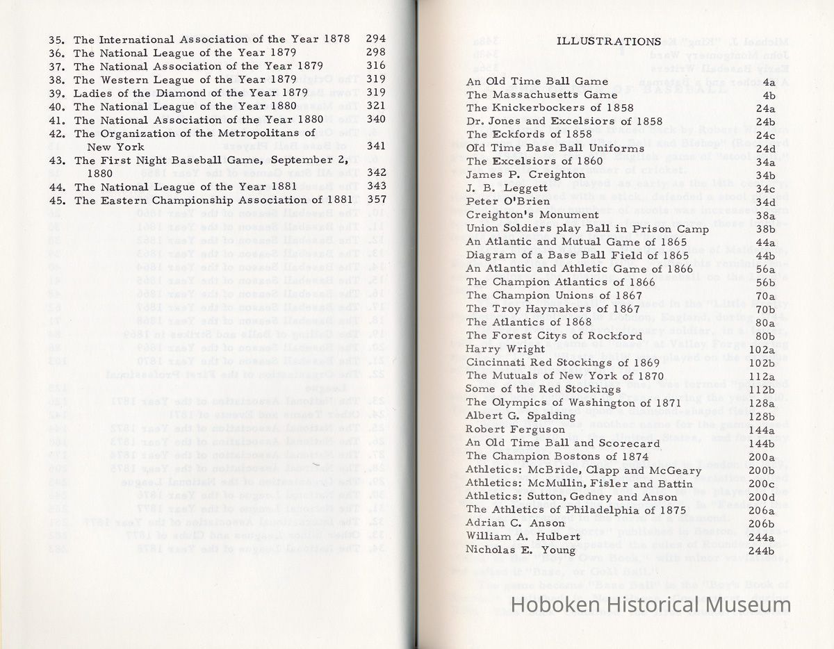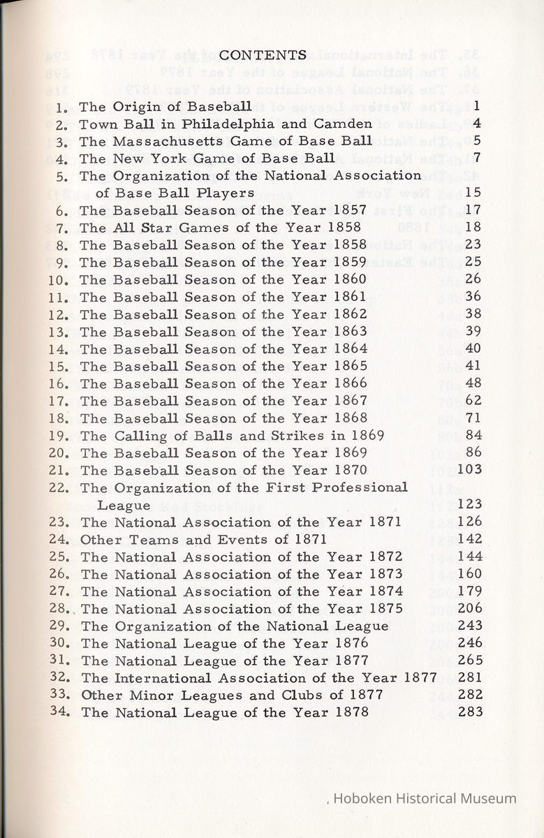 Notes: 2012.001.0112 [page vii] CONTENTS 1. The Origin of Baseball 1 2. Town Ball in Philadelphia and Camden 4 3. The Massachusetts Game of Base Ball 5 4. The New York Game of Base Ball 7 5. The Organization of the National Association of Base Ball Players 15 6. The Baseball Season of the Year 1857 17 7. The All Star Games of the Year 1858 18 8. The Baseball Season of the Year 1858 23 9. The Baseball Season of the Year 1859 25 10. The Baseball Season of the Year I860 26 11. The Baseball Season of the Year 1861 36 12. The Baseball Season of the Year 1862 38 13. The Baseball Season of the Year 1863 39 14. The Baseball Season of the Year 1864 40 15. The Baseball Season of the Year 1865 41 16. The Baseball Season of the Year 1866 48 17. The Baseball Season of the Year 1867 62 18. The Baseball Season of the Year 1868 71 19. The Calling of Balls and Strikes in 1869 84 20. The Baseball Season of the Year 1869 86 21. The Baseball Season of the Year 1870 103 22. The Organization of the First Professional League 123 23. The National Association of the Year 1871 126 24. Other Teams and Events of 1871 142 25. The National Association of the Year 1872 144 26. The National Association of the Year 1873 160 27. The National Association of the Year 1874 179 28. The National Association of the Year 1875 206 29. The Organization of the National League 243 30. The National League of the Year 1876 246 31. The National League of the Year 1877 265 32. The International Association of the Year 1877 281 33. Other Minor Leagues and Clubs of 1877 282 34. The National League of the Year 1878 283 page [viii] 35. The International Association of the Year 1878 294 36. The National League of the Year 1879 298 37. The National Association of the Year 1879 316 38. The Western League of the Year 1879 319 39. Ladies of the Diamond of the Year 1879 319 40. The National League of the Year 1880 321 41. The National Association of the Year 1880 340 42. The Organization of the Metropolitans of New York 341 43. The First Night Baseball Game, September 2, 1880 342 44. The National League of the Year 1881 343 45. The Eastern Championship Association of 1881 357 page [ix] ILLUSTRATIONS An Old Time Ball Game 4a The Massachusetts Game 4b The Knickerbockers of 1858 24a Dr. Jones and Excelsiors of 1858 24b The Eckfords of 1858 24c Old Time Base Ball Uniforms 24d The Excelsiors of I860 34a James P. Creighton 34b J. B. Leggett 34c Peter O'Brien 34d Creighton's Monument 38a Union Soldiers play Ball in Prison Camp 38b An Atlantic and Mutual Game of 1865 44a Diagram of a Base Ball Field of 1865 44b An Atlantic and Athletic Game of 1866 56a The Champion Atlantics of 1866 56b The Champion Unions of 1867 70a The Troy Haymakers of 1867 70b The Atlantic s of 1868 80a The Forest Citys of Rockford 80b Harry Wright 102a Cincinnati Red Stockings of 1869 102b The Mutuals of New York of 1870 112a Some of the Red Stockings 112b The Olympics of Washington of 1871 128a Albert G. Spalding 128b Robert Ferguson 144a An Old Time Ball and Scorecard 144b The Champion Bostons of 1874 200a Athletics: McBride, Clapp and McGeary 200b Athletics: McMullin, Fisler and Battin 200c Athletics: Sutton, Gedney and Anson 200d The Athletics of Philadelphia of 1875 206a Adrian C. Anson 206b William A. Hulbert 244a Nicholas E. Young 244b page [x] Michael J. "King" Kelly 348a John Montgomery Ward 348b Early Baseball Writers 356a A Catcher and a Batsman 356b ==== Status: OK Status By: dw Status Date: 2012-08-16