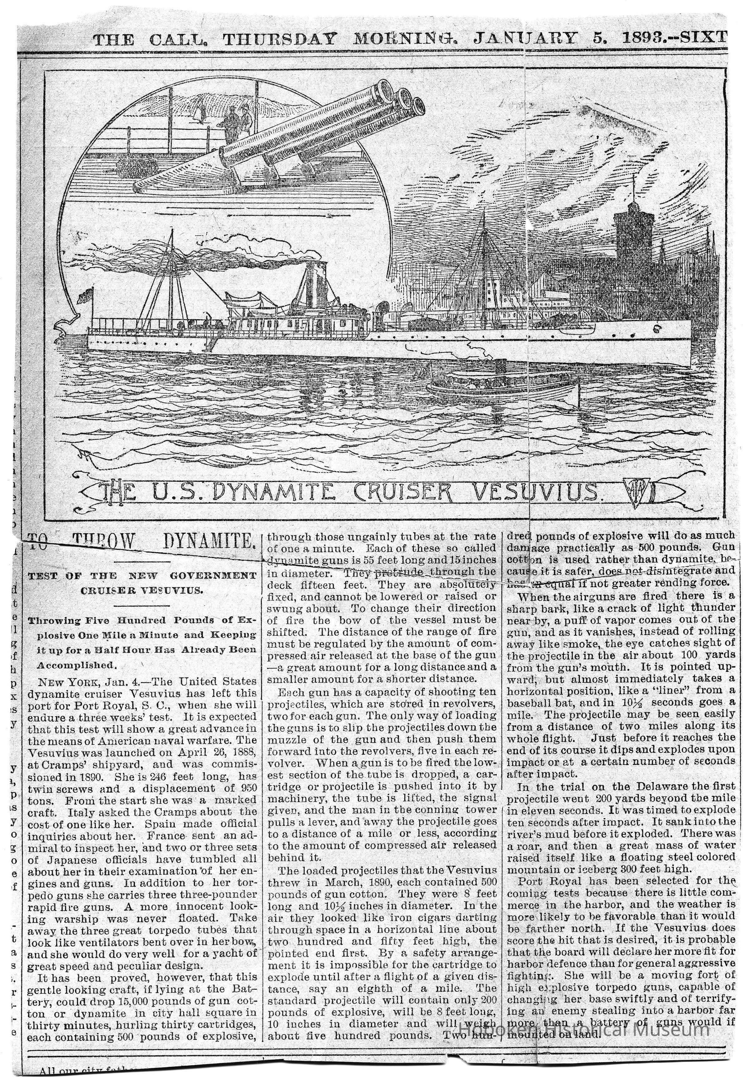 Newsclipping: The U.S. Dynamite Cruiser Vesuvius. The Call, Jan. 5, 1893.