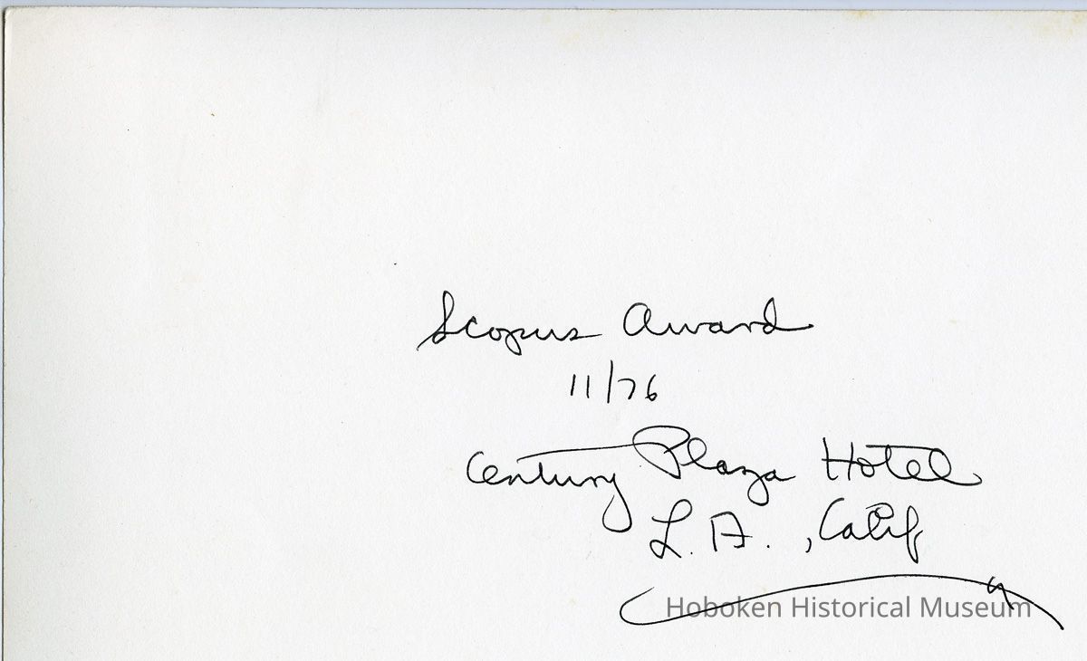 B+W photo of Frank Sinatra & mother, Dolly Sinatra, at Century Plaza Hotel, Los Angeles, CA, for Scopus Award, Nov. 14, 1976.