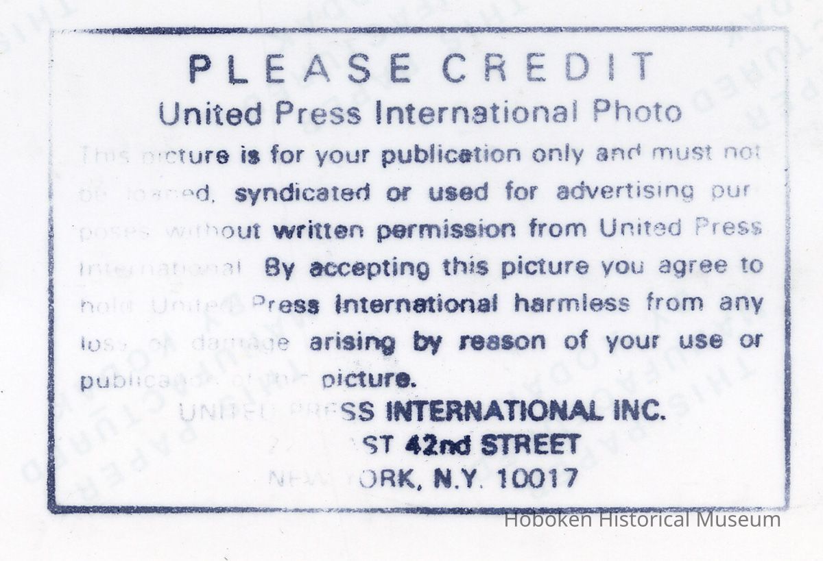 8" x 10" wide print; reverse has press service inkstamp (United Press International)