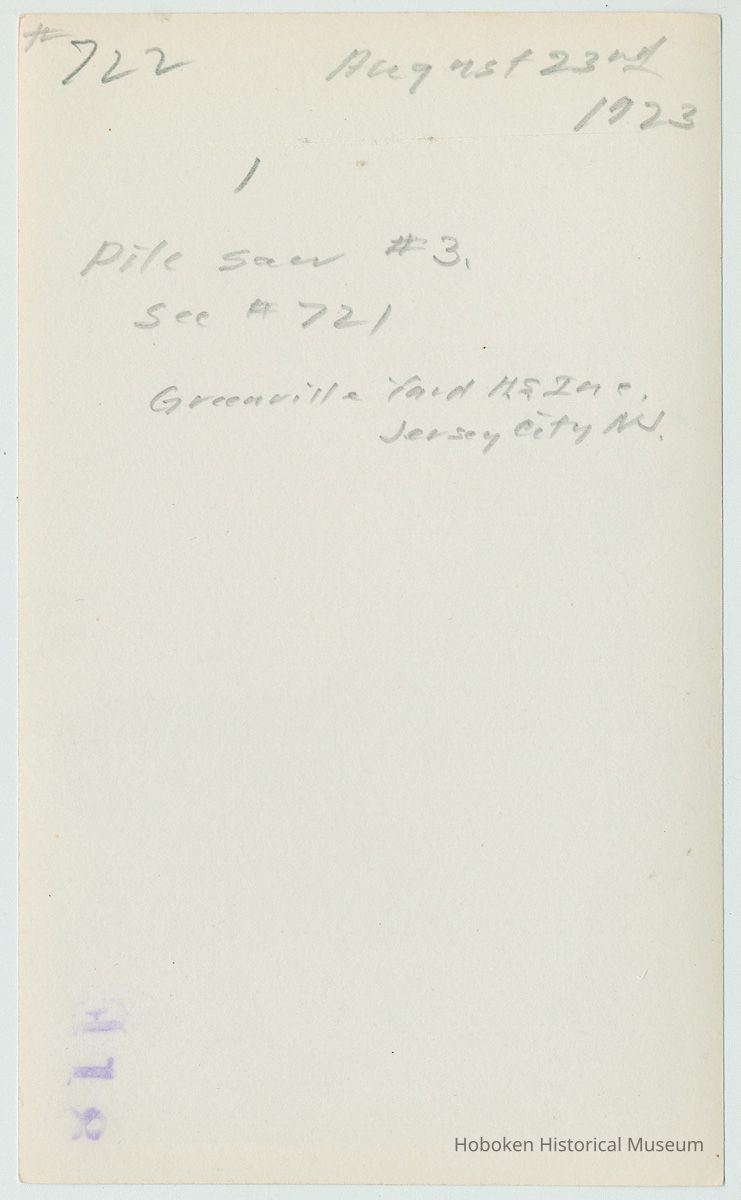 Text on reverse: #722, August 23rd, 1923,Pile saw #3, see #721