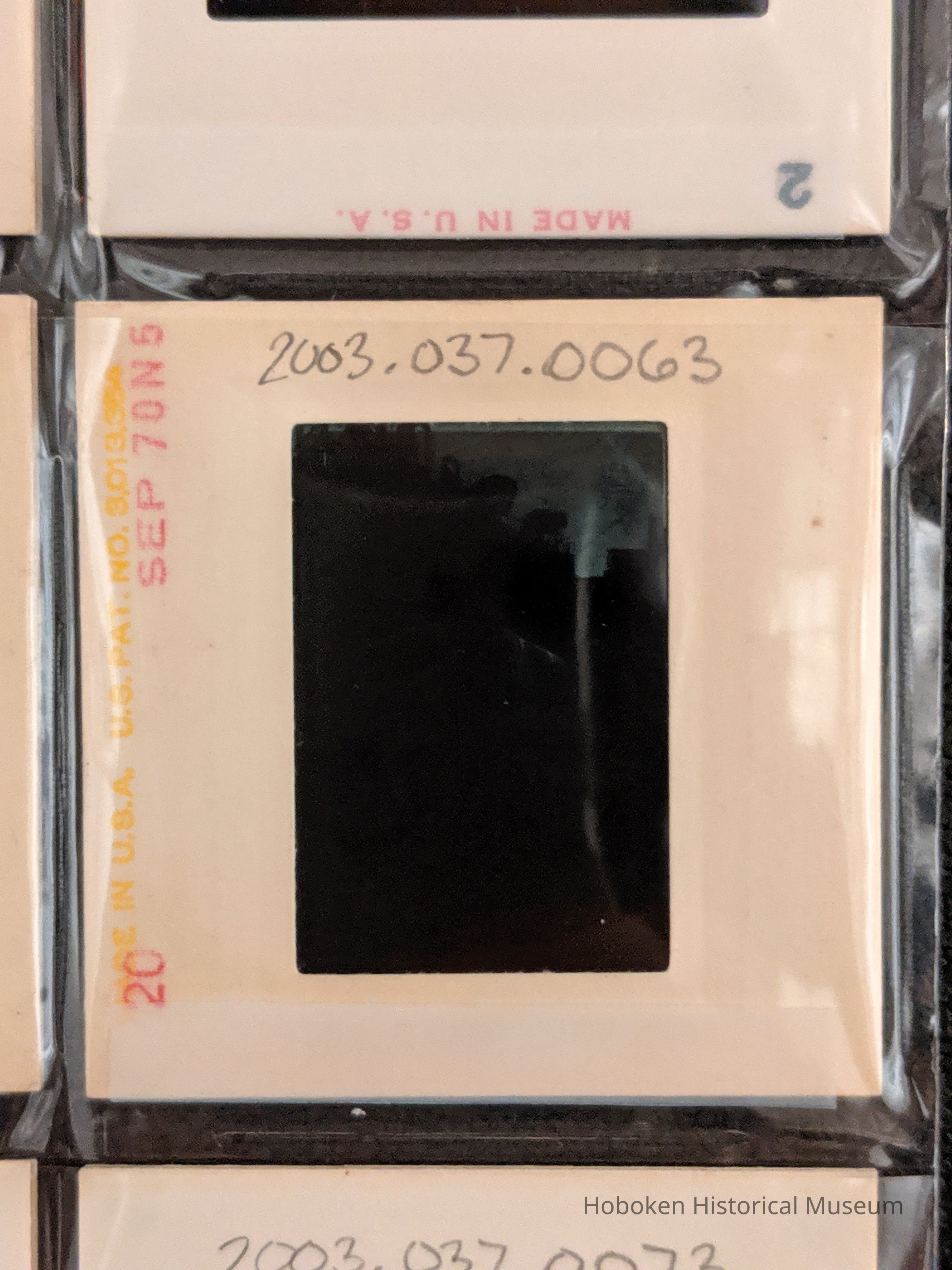 Color slide. Image of a man in a hard hat. Photo taken by Anita Heimbruch.