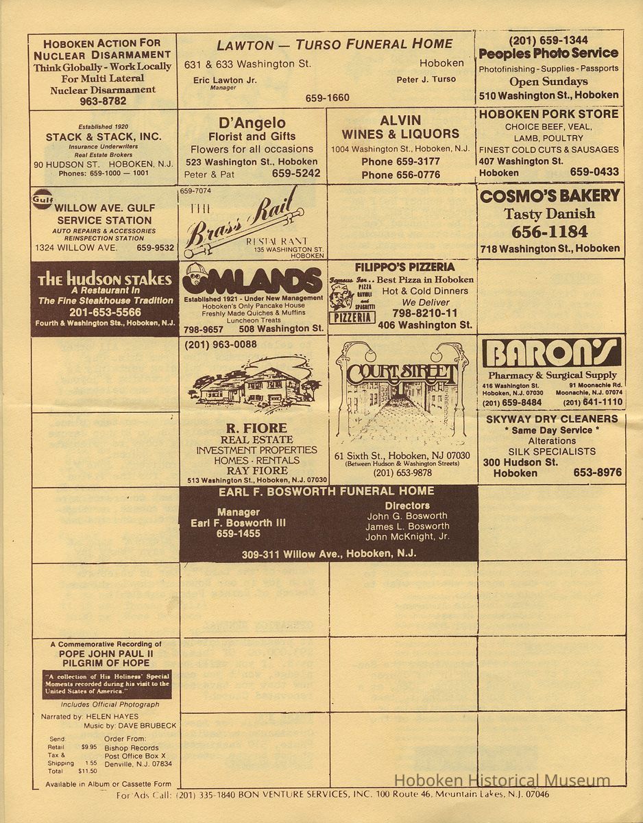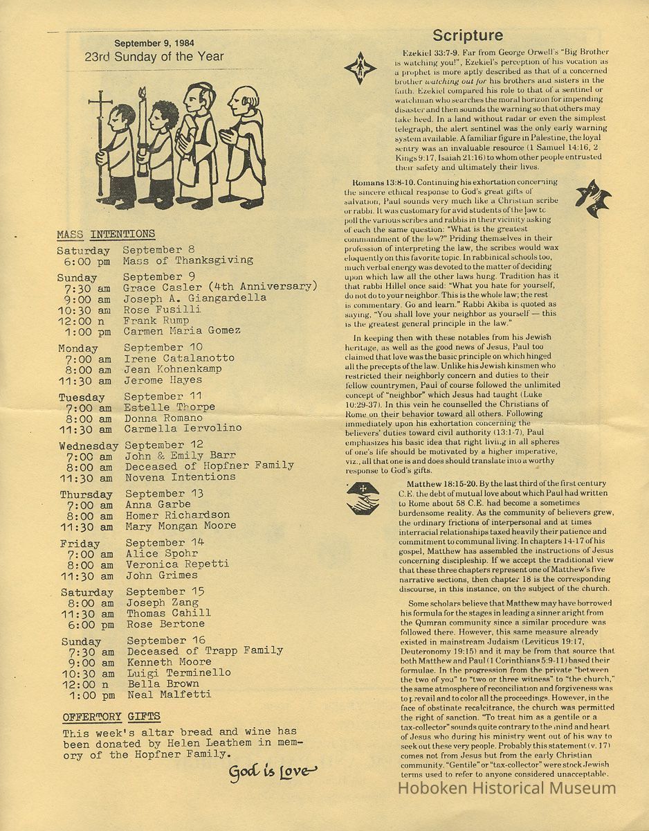Bulletin, Sts. Saints Peter and Paul Church, 404 Hudson St., Hoboken, New Jersey, Sept. 9, 1984.