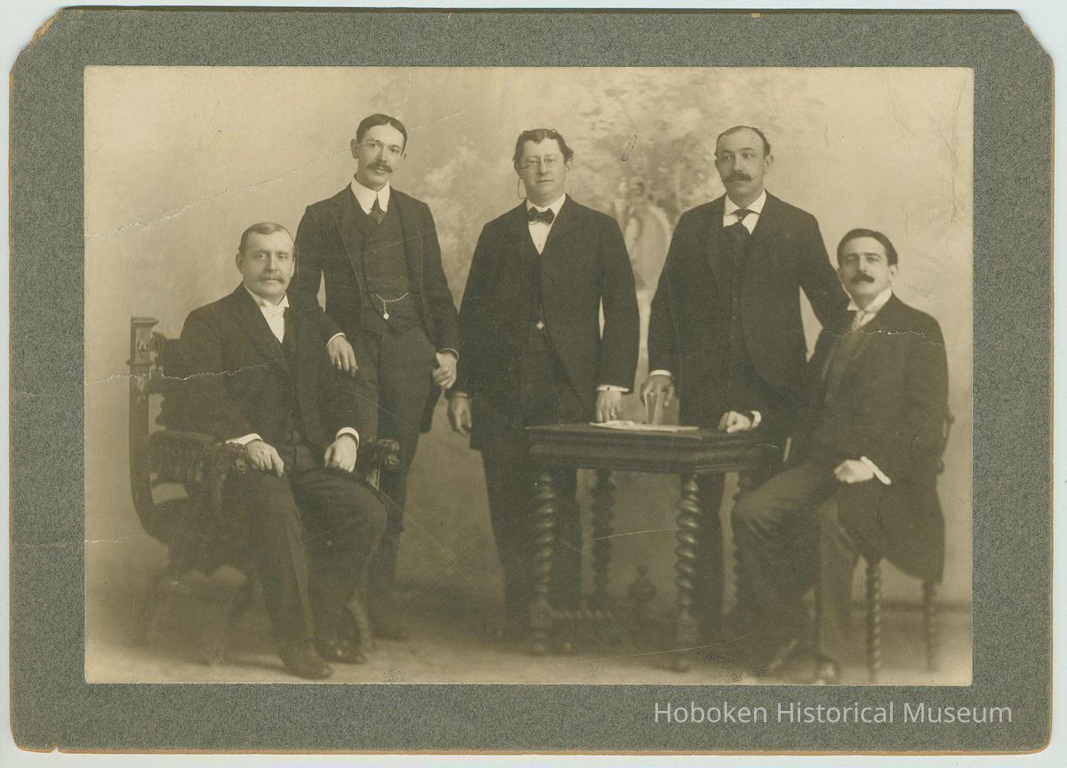 Sepia-tone group photo of the Hoboken Board of Education, Hoboken, no date, ca. 1900.