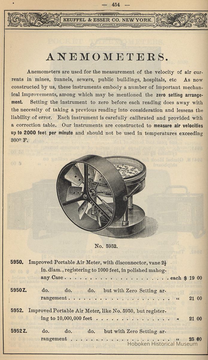 Anemometer made by the Keuffel & Esser Co., N.Y. (factories in Hoboken, N.J.) N.d ca.1900-1930.