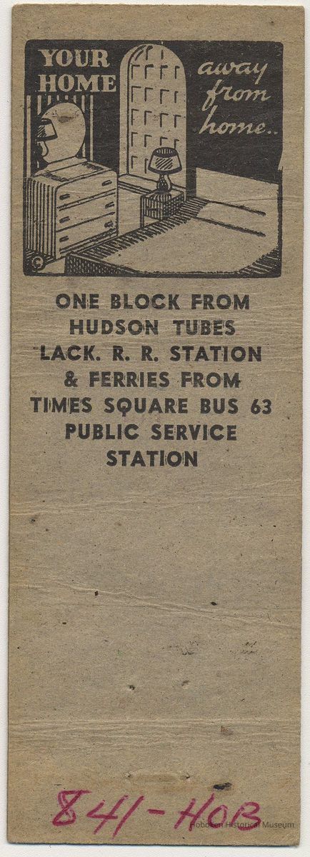 Matchbook cover: Hotel Victor, Hoboken, N.J. No date, ca. 1935-1950.