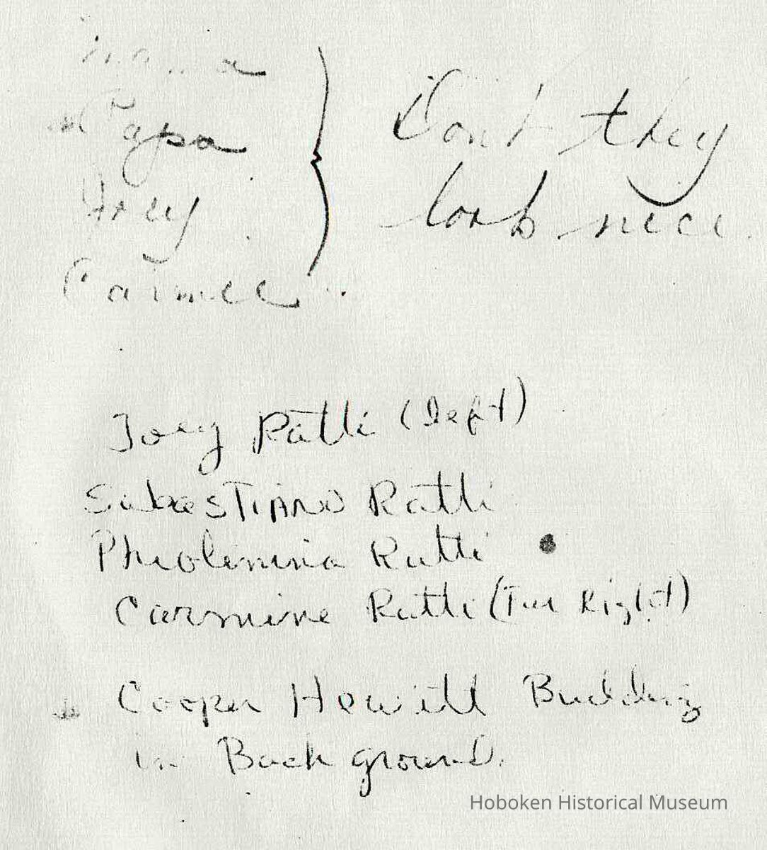 The inscription also notes: Mama, Papa, Joey, Carmine. Don't they look nice. The inscription also notes that the Cooper-Hewitt [Electric Co.] building is in the background.