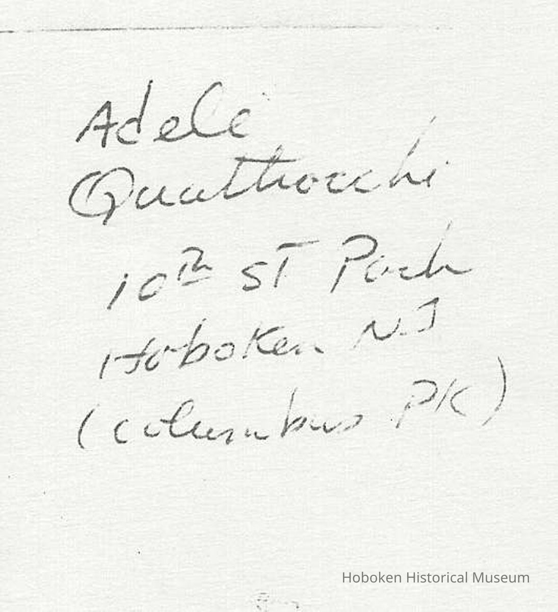 Per Robert Foster: 11" x 17" photocopy sheets with 15 photographs copied front and back of Hoboken residents in the 1940's; the original photos were lost by the donor after the photocopies were made.