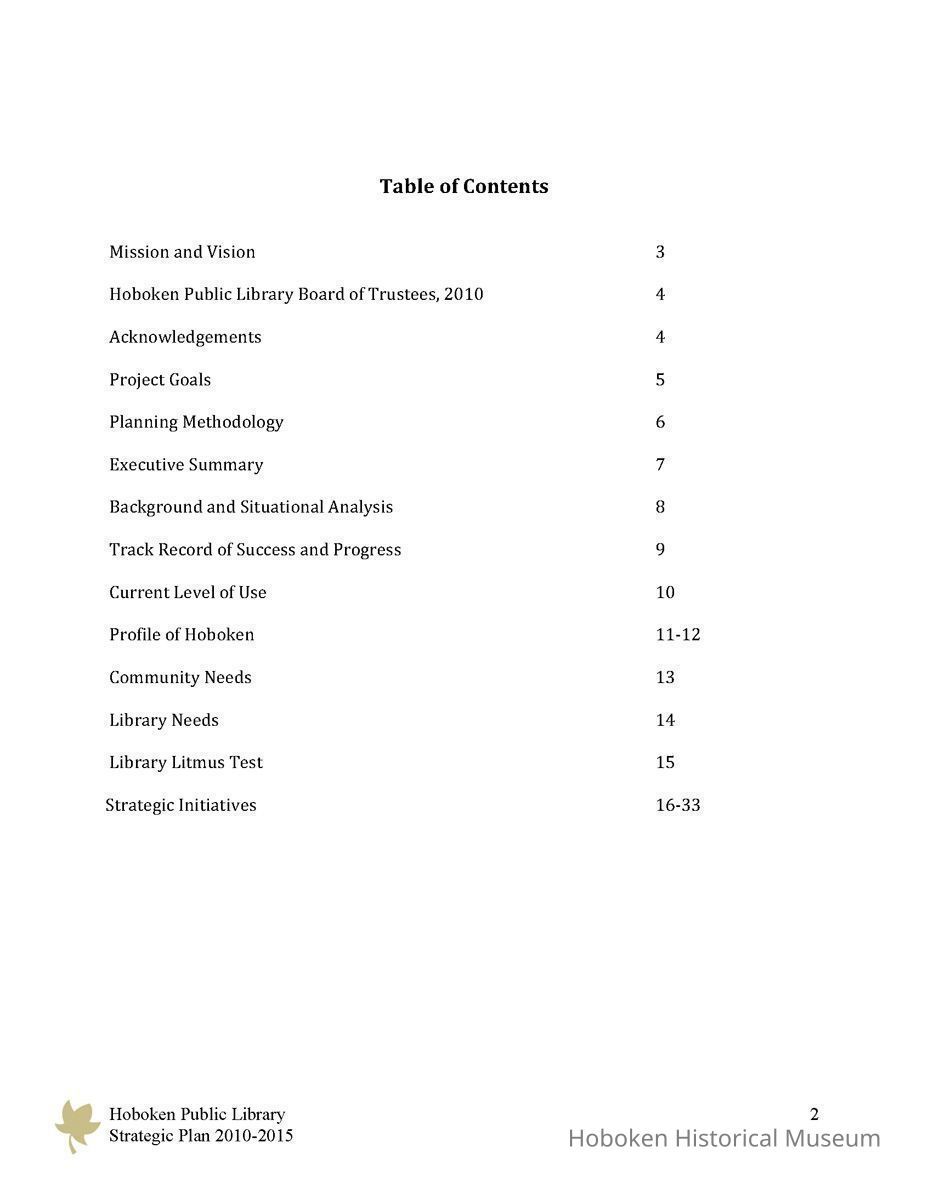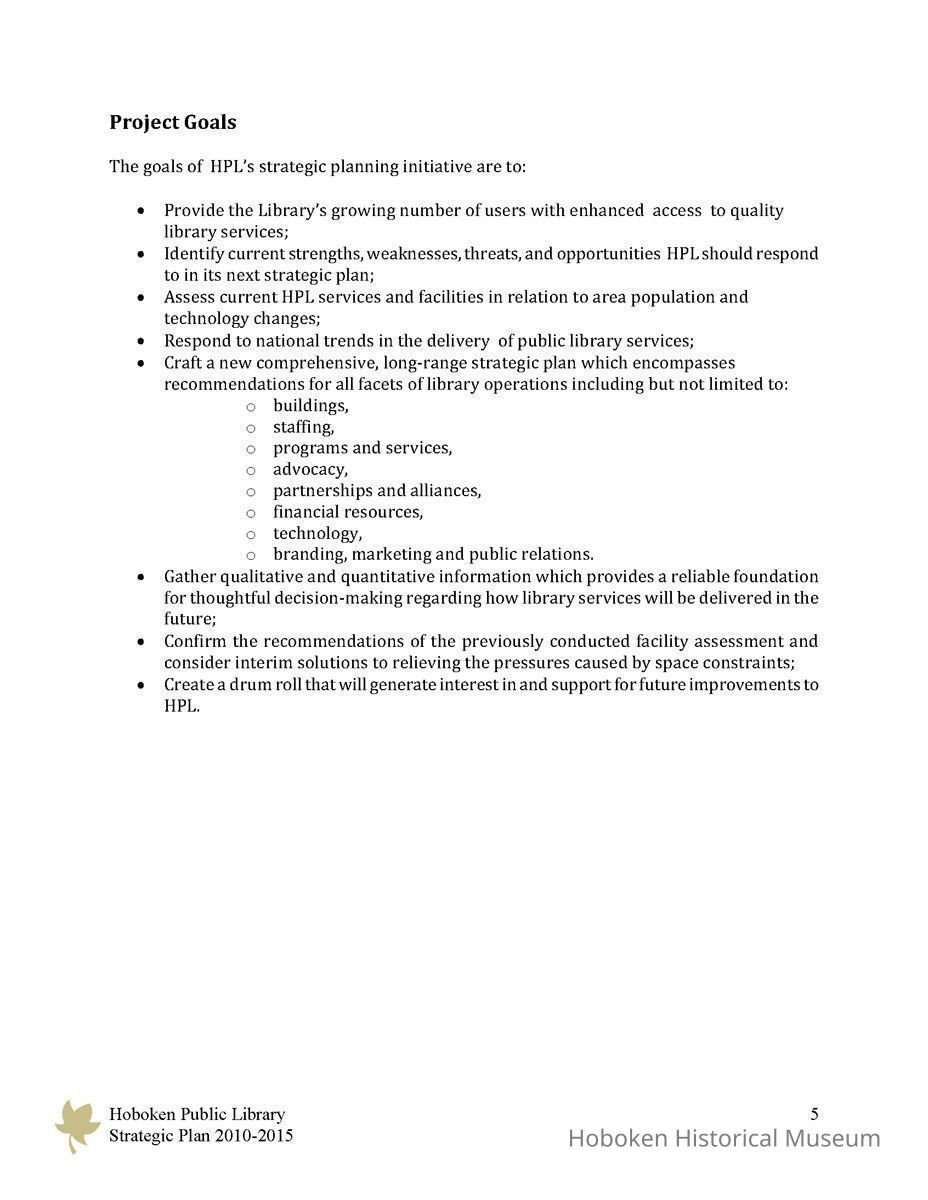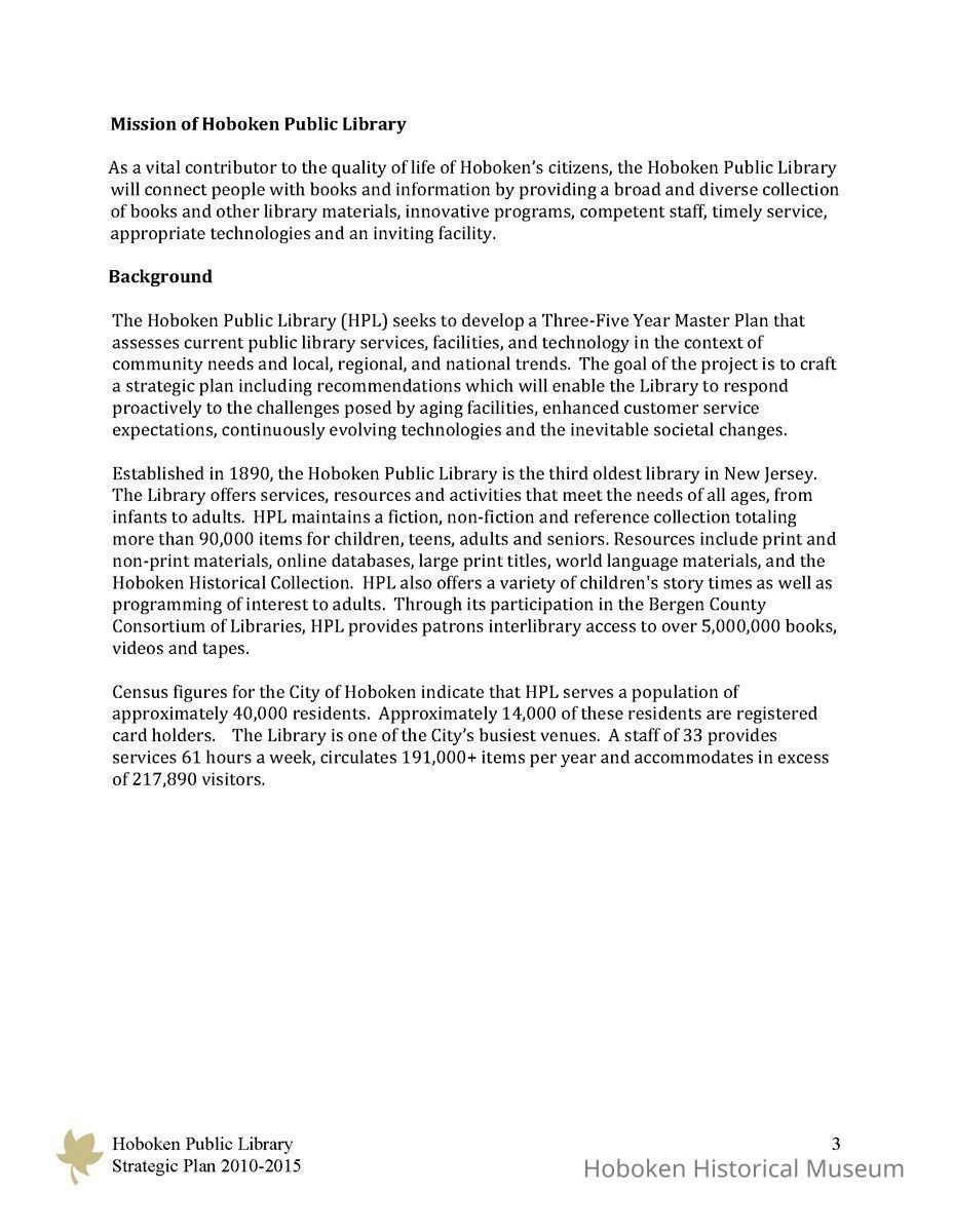 Hoboken Public Library Strategic Plan 2010-2015.
