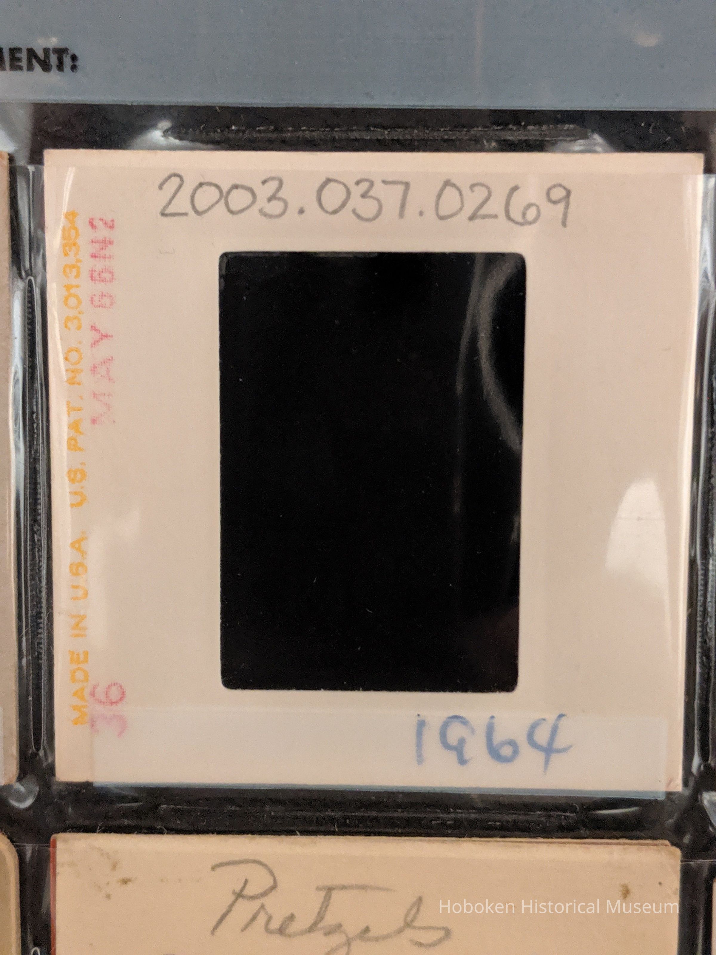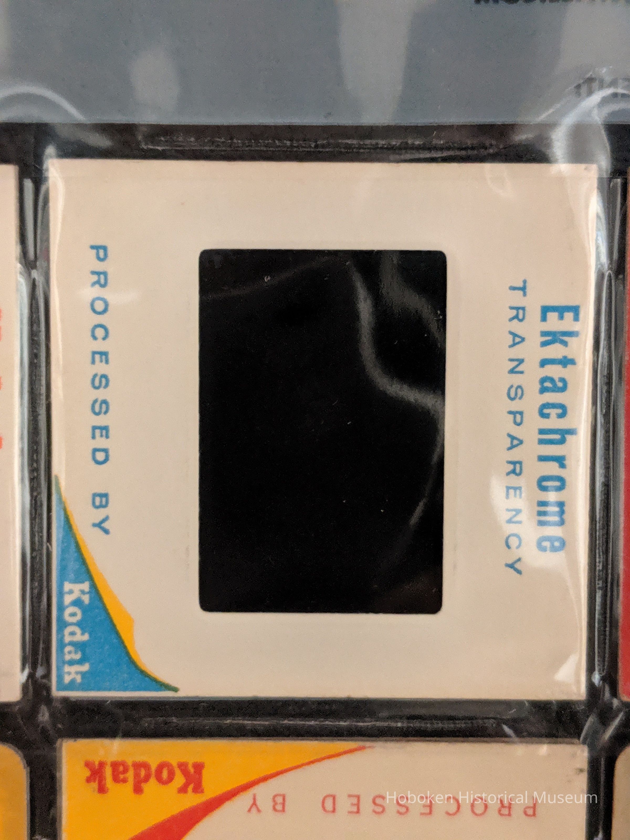 Color slide of a woman standing in a backyard.