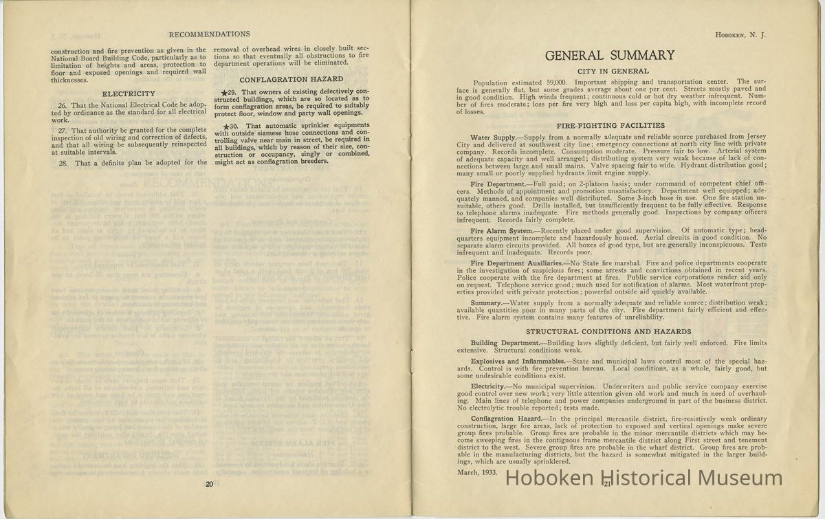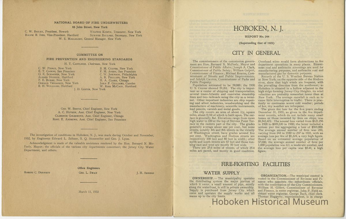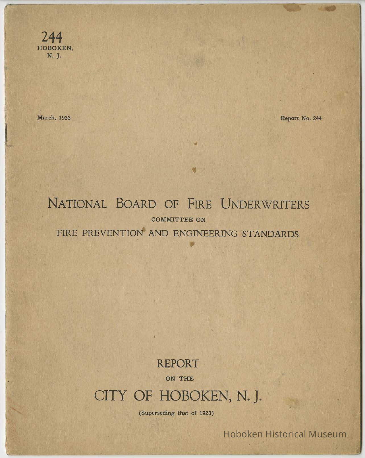 Report on the City of Hoboken, N.J. (Superseding that of 1923) Report No. 244. March 11, 1933. National Board of Fire Underwriters; Committee on Fire Prevention and Engineering Standards. (New York.)